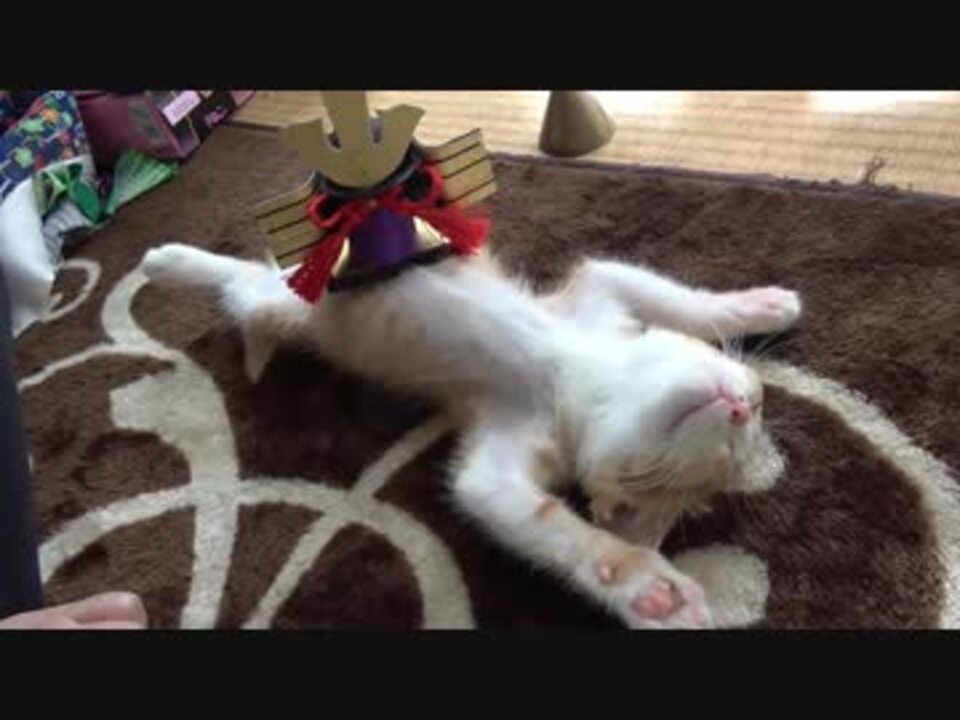 兜をおなかに飾られてしまう子猫がかわいい 3:27