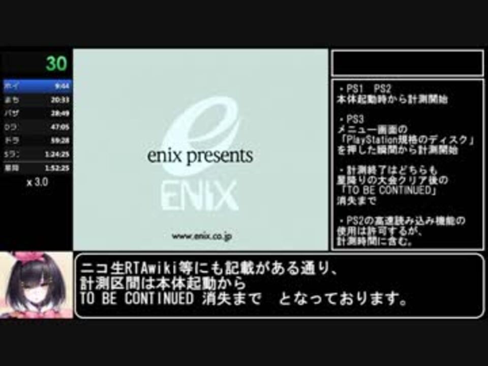 PS2用のキャプボ購入に1敗したため初投稿です。<br><br>ハード:PS2 90000型<br>タイマースタート:本体起動<br>タイマーストップ:星降りの大会クリア後の「TO BE CONTINUED」消失まで<br><br>次→<a href="https://www.nicovideo.jp/watch/sm33234682" class="watch">sm33234682</a><br>一覧:<a href="https://www.nicovideo.jp/mylist/61974766" target="_blank" rel="noopener">mylist/61974766</a><br>Part1:<a href="https://www.nicovideo.jp/watch/sm33203411" class="watch">sm33203411</a> <br><br>DQMJ3のRTAはこちら→<a href="https://www.nicovideo.jp/watch/sm29863340" class="watch">sm29863340</a><br>DQMJ3PのRTAはこちら→<a href="https://www.nicovideo.jp/watch/sm30933762" class="watch">sm30933762</a><br>テリワン3DのRTAはこちら→ <a href="https://www.nicovideo.jp/watch/sm31696498" class="watch">sm31696498</a><br><span style="color: #000000; font-size: 13px;">part1集:<a href="https://www.nicovideo.jp/mylist/65870331" target="_blank" rel="noopener">mylist/65870331</a></span><br><br>5/20:追記 <br>投稿者コメントで誤情報等の訂正コメント入れました<br>細かい誤記や日本語がおかしいところ等については許して;;<br><br>この動画で利用している株式会社スクウェア・エニックスを代表とする共同著作者が権利を所有する著作物及びスギヤマ工房有限会社が権利を所有する楽曲の転載・配布は禁止いたします。<br>(C) ARMOR PROJECT/BIRD STUDIO/SQUARE ENIX All Rights Reserved.<br>(C) SUGIYAMA KOBO