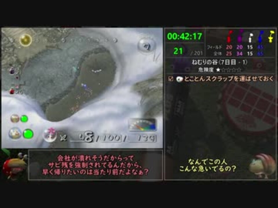 チャートを覚えるのはそんなに難しくないです<br /><br />EARLY BLUES~地下の秘密基地B4まで<br /><br />環境:GCソフト、Wii実機(HDMI出力)、AVT-C875、AmaRecTV3.10<br /><br />無編集版(YouTube):<a href="https://youtu.be/KOz6YS6q_oo" target="_blank" rel="noopener nofollow">https://youtu.be/KOz6YS6q_oo</a><br />無編集版(Twitch):<a href="https://www.twitch.tv/videos/253610584" target="_blank" rel="noopener nofollow">https://www.twitch.tv/videos/253610584</a><br /><br />前→<a href="https://www.nicovideo.jp/watch/sm33176678" class="watch">sm33176678</a><br />次→<a href="https://www.nicovideo.jp/watch/sm33308485" class="watch">sm33308485</a><br /><a href="https://www.nicovideo.jp/mylist/59660296" target="_blank" rel="noopener">mylist/59660296</a><br /><br />(5/17追記)<br />勘違いしている視聴者兄貴が多いのでここに書いておきます<br />「運搬速度」と「移動速度」は全くの別物です<br />ゲキカラ時の「運搬速度」は、その色の花ピクミンと同速になります<br />ゲキカラ時の「移動速度」は、花の白ピクミンと同じくらいの速さで、ダッシュブーツ時のオリマー達よりも速く、計測不能なので「知らない」としています<br /><br />(5/23追記) <br />チャートが見たい視聴者兄貴がいた気がするので、チャートを置いておきます<br /><a href="https://imgur.com/a/8XSWtMw" target="_blank" rel="noopener nofollow">https://imgur.com/a/8XSWtMw</a> (画像ファイル783x5702) <br />