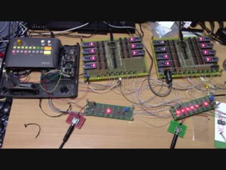 ボーカル入り版出来ました♪<a href="https://www.nicovideo.jp/watch/sm33290778" class="watch">sm33290778</a><br /><br />質問の回答をどうしたら良いか分からなかったので、下記にコメントしました。<br /><a href="https://www.youtube.com/watch?v=frwKjFP9sLk" target="_blank" rel="noopener nofollow">https://www.youtube.com/watch?v=frwKjFP9sLk</a><br /><br />前のうp時の致命的なノイズの原因はD級アンプでした。<br />まともに聞けるようになってきたので<br />ドラムが得意なフレンズにも参加してもらいました♪<br />歌が得意なフレンズにもそろそろ出てきてもらおうかな?<br /><br />しかし、ボリュームもアンプも取っ払われてLEDモジュールに<br />成り下がった子基板、どうしようかしら?<br /><br />追伸:反応、広告ありがとうございます!!<br />ドラムの音なんですが、元々は昔捨ててしまったCMU-800を再現したくて 始めたので<br />当初は808風音源を探していました。<br />ご要望にお応えして808音源版もうpしました<a href="https://www.nicovideo.jp/watch/sm33244626" class="watch">sm33244626</a><br />VS1053bを使用したTHE電子工作版うpしました<a href="https://www.nicovideo.jp/watch/sm33267970" class="watch">sm33267970</a><br /><br />あと、ドラムが得意なフレンズからの伝言です<br />「がんばってたたいているので、のケモノにしないでぇーーーーー(´;ω;`)ブワッ」 <br /><br />自分でもすっかり忘れていましたが、この動画はあくまでも「nanoでYMZの音量調節をしたデモ演奏」です。 <br />まだ完成しておりませんので次作にご期待ください。反響大きかったので次もこの曲で行きます。 <br />私の予想では、悪い意味で期待を裏切ると思います。(ニコニコできない動画投稿で定評なので…(^^;)<br /><br />ボーカルとコーラス入りのバージョン出来たと思ったら、セーブ失敗してMIDIファイルが修復不能になった…orz <br />またやり直し…心折れそう…<br />先行してセリフパートのルーチンができました。あとは壊れたMIDIデータを直して、モジュール追加でノイジーになった音を何とかして…今週末には完成させたいなぁ~