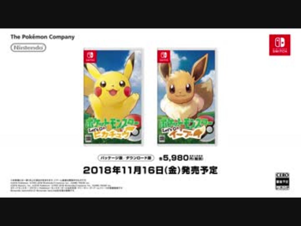 ピカチュウとイーブイ、キミはどっちと冒険に出る?<br /><br />『ポケットモンスター』シリーズ最新作が、Nintendo Switchに登場!<br />2018年11月16日(金)発売予定!<br />Nintendo Switchの特徴と『Pokémon GO』を掛け合わせて生まれた、全く新しい体験がキミを待っている!<br /><br />公式サイト<br /><a href="http://www.pokemon.co.jp/ex/pika_vee/" target="_blank" rel="noopener nofollow">http://www.pokemon.co.jp/ex/pika_vee/</a><br /><br />©2018 Pokémon. ©1995-2018 Nintendo/Creatures Inc./GAME FREAK inc.<br />©2018 Niantic, Inc. ©2018 Pokémon. ©1995-2018 Nintendo/Creatures Inc. /GAME FREAK inc. <br />ポケットモンスター・ポケモン・Pokémon・モンスターボールは任天堂・クリーチャーズ・ゲームフリークの登録商標です。<br />※画面は開発中のものです。<br /><br /><br />【ポケモン公式配信】ポケットモンスター新作発表会 2018/5/30【ポケモンダイレクト】 <br /><a href="https://www.nicovideo.jp/watch/sm33287959" class="watch">sm33287959</a><br /><br />