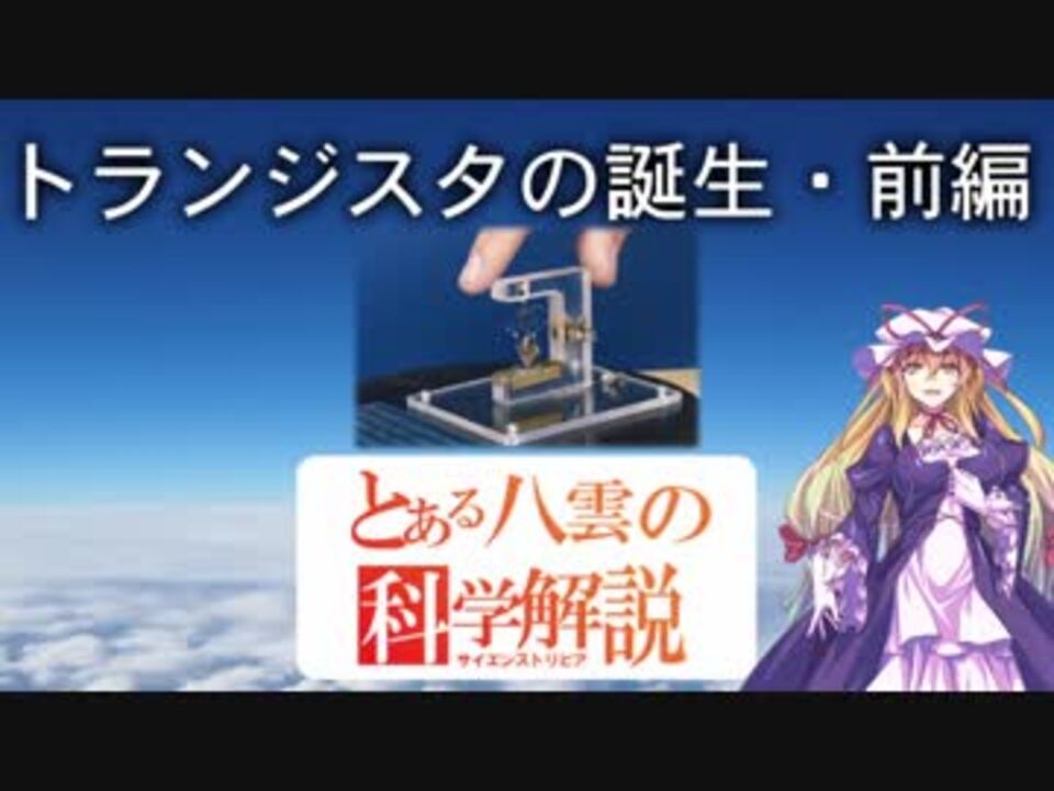 トランジスタの誕生にまつわる歴史についてです。<br /><br />宣伝いただいた皆様、ありがとうございます。<br /><br />とある八雲の科学解説シリーズ <a href="https://www.nicovideo.jp/mylist/58019196" target="_blank" rel="noopener">mylist/58019196</a><br />前回 『野菜を光らせてみた』 <a href="https://www.nicovideo.jp/watch/sm33043131" class="watch">sm33043131</a><br />次回 『トランジスタの誕生・後編』 <a href="https://www.nicovideo.jp/watch/sm33400824" class="watch">sm33400824</a>