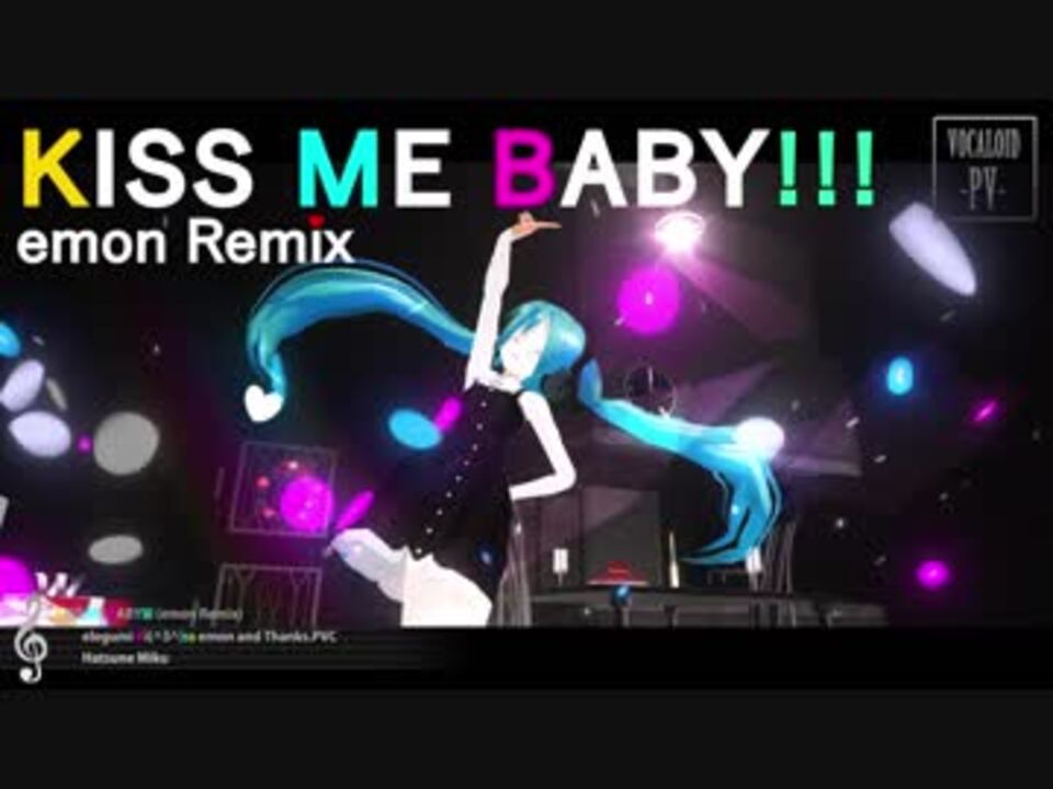<b>「初めて出会ったときに魔法の呪文にかけられた」</b><br />出題:KISS ME BABY!!! x emon(Tes.) x Thanks.PVCの答えは何?<br />回答:ぴゃーーーーーーーーい!!(マジカル!!!!)<br /><br />emonさん x Thanksさんという何この僕の考えた最強のKISS ME BABY!!!です。<br />曲:最高<br />映像:最高<br />皆:最高<br /><br />私のさらなる夢を叶えてくれたemonさん、Thanks.PVCさんにKi(^3^)ss<br />当然、KISS ME BABY!!!を愛してくれる全ての人たちにKi(^3^)ss<br /><br />■MMD-PV → Thanks( <a href="https://www.nicovideo.jp/mylist/29558857" target="_blank" rel="noopener">mylist/29558857</a> )さん<br /><br />■アレンジ→emon(Tes.)さん:<a href="https://www.nicovideo.jp/mylist/19849912" target="_blank" rel="noopener">mylist/19849912</a><br /> twitter:<a href="https://twitter.com/emon316" target="_blank" rel="noopener nofollow">https://twitter.com/emon316</a><br /><br />■歌詞 → <a href="http://piapro.jp/t/-Jry" target="_blank" rel="noopener nofollow">http://piapro.jp/t/-Jry</a><br />■カラオケ→ オフボ:<a href="http://piapro.jp/t/OTia" target="_blank" rel="noopener nofollow">http://piapro.jp/t/OTia</a><br /> ハモ付:<a href="http://piapro.jp/t/94Dv" target="_blank" rel="noopener nofollow">http://piapro.jp/t/94Dv</a><br /><br />■マイリス→<a href="https://www.nicovideo.jp/mylist/25497827" target="_blank" rel="noopener">mylist/25497827</a><br /><br />■twitter →<a href="https://twitter.com/elegumi" target="_blank" rel="noopener nofollow">https://twitter.com/elegumi</a> <br />■WEB → <a href="http://elegumi.com/" target="_blank" rel="noopener nofollow">http://elegumi.com/</a><br /><br /><br />そして・・・この企画まだ終わらない!!!<br />もしよろしければこちらもどうぞ!<br /><br /><font color="#00ff00"><b>同時投稿の</b></font>【MMD-PV】 KISS ME BABY!!! - elegumi Ki(^3^)ss Thanks.PVC 【初音ミク】はこちら <br />→<a href="https://www.nicovideo.jp/watch/sm33300222" class="watch">sm33300222</a>