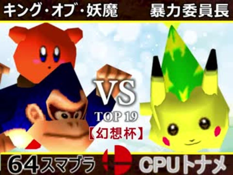 どうぶつえん<br />※どちらが勝つかアンケ結果(Twitter調べ)<br />キング・オブ・妖魔(DK) 33% VS 暴力委員長(PI) 67%<br /><br /><font color="#0000ff"><u>※64スマブラCPUトナメ実況のwikiができた模様</u>→</font> <a href="https://wiki3.jp/cpu_64" target="_blank" rel="noopener nofollow">https://wiki3.jp/cpu_64</a><br /><br /><b><font size="5"><font color="#ff0000">次→</font></font></b>【<a href="https://www.nicovideo.jp/watch/sm33310146" class="watch">sm33310146</a>】※毎日投稿<br /><br />前【<a href="https://www.nicovideo.jp/watch/sm33297097" class="watch">sm33297097</a>】 一回戦第一試合【<a href="https://www.nicovideo.jp/watch/sm33292256" class="watch">sm33292256</a>】<br /> <br />幻想杯マイリスト【<a href="https://www.nicovideo.jp/mylist/62171629" target="_blank" rel="noopener">mylist/62171629</a>】 <br />64スマブラCPUトナメ実況part1まとめ【<a href="https://www.nicovideo.jp/mylist/60846861" target="_blank" rel="noopener">mylist/60846861</a>】<br />その他シリーズ【<a href="https://www.nicovideo.jp/mylist/12965027" target="_blank" rel="noopener">mylist/12965027</a>】<br /><br /><b><font color="#00bfff">Twitter</font></b>【@niconicopppppp】<br /><b><font color="#ff4500">チャンネル</font></b>【<a href="https://ch.nicovideo.jp/p-desu" target="_blank" rel="noopener">ch.nicovideo.jp/p-desu</a>】