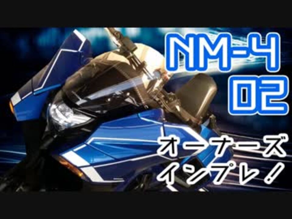 <br /><font color="#262626" size="3">どうもこんにちは、青い末弟と申します。</font><br />今回は真面目に納車された車両<font color="#0000ff" size="5">「NM4-02」</font> のインプレッション動画となります。<br />一般的なバイクとは異なった点の多い車両ですのでDCTのAT/MTのイメージや収納部<br />およびギミック、そして時速100キロでの回転数、取り回しなど実用面での紹介が主となります。 <br />これであわよくばNM4仲間が増えるといいな(*'ω'*)<br /><br />← NM-4 納車編 <a href="https://www.nicovideo.jp/watch/sm32941475" class="watch">sm32941475</a> <font color="#001835">NM4-02 初めての出撃</font> 前編→<a href="https://www.nicovideo.jp/watch/sm33533830" class="watch">sm33533830</a><br /> <br />ツイッター。気軽にフォローしてもらえると嬉しいです! <br /><a href="https://twitter.com/R125_BLUE" target="_blank" rel="noopener nofollow">https://twitter.com/R125_BLUE</a> <br />◆これまでのバイクツーリング動画 <a href="https://www.nicovideo.jp/mylist/34438655" target="_blank" rel="noopener">mylist/34438655</a>