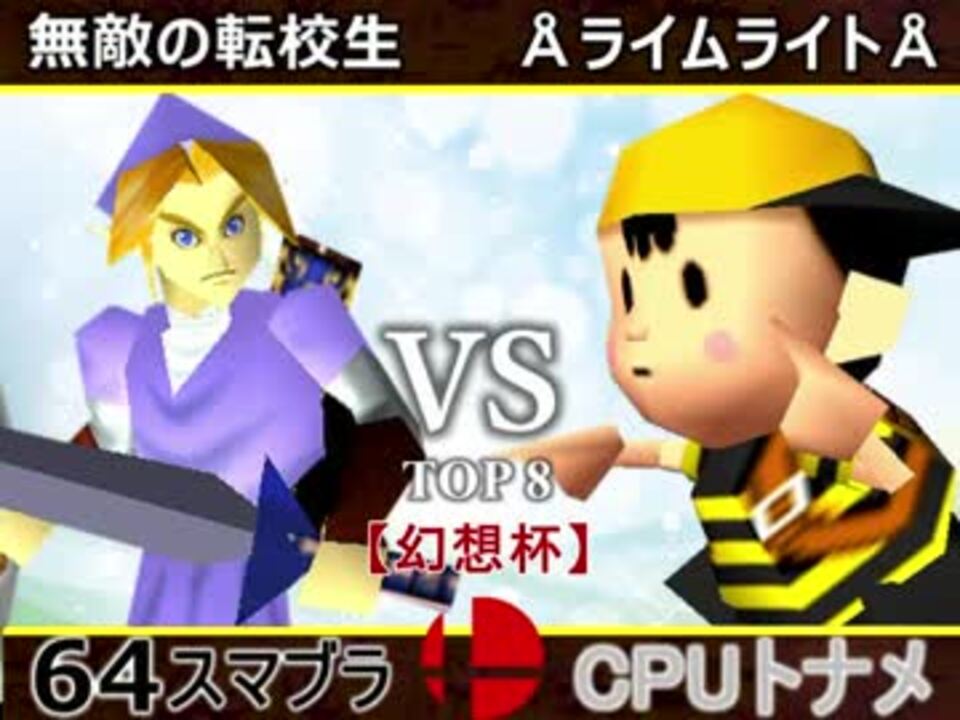 レベル高須クリニック!<br />※どちらが勝つかアンケ結果(Twitter調べ) <br />無敵の転校生(LI) 55% VS ÅライムライトÅ(NE) 45%<br /><br /><font color="#0000ff"><u>※64スマブラCPUトナメ実況のwikiができた模様</u>→</font> <a href="https://wiki3.jp/cpu_64" target="_blank" rel="noopener nofollow">https://wiki3.jp/cpu_64</a><br /><br /><b><font size="5"><font color="#ff0000">次→</font></font></b>【<a href="https://www.nicovideo.jp/watch/sm33359065" class="watch">sm33359065</a>】※毎日投稿<br /><br />前【<a href="https://www.nicovideo.jp/watch/sm33350091" class="watch">sm33350091</a>】 一回戦第一試合【<a href="https://www.nicovideo.jp/watch/sm33292256" class="watch">sm33292256</a>】<br /> <br />幻想杯マイリスト【<a href="https://www.nicovideo.jp/mylist/62171629" target="_blank" rel="noopener">mylist/62171629</a>】 <br />64スマブラCPUトナメ実況part1まとめ【<a href="https://www.nicovideo.jp/mylist/60846861" target="_blank" rel="noopener">mylist/60846861</a>】<br />その他シリーズ【<a href="https://www.nicovideo.jp/mylist/12965027" target="_blank" rel="noopener">mylist/12965027</a>】<br /><br /><b><font color="#00bfff">Twitter</font></b>【<a href="https://twitter.com/niconicopppppp】" target="_blank" rel="noopener nofollow">https://twitter.com/niconicopppppp】</a><br /><b><font color="#ff4500">チャンネル</font></b>【<a href="https://ch.nicovideo.jp/p-desu" target="_blank" rel="noopener">ch.nicovideo.jp/p-desu</a>】