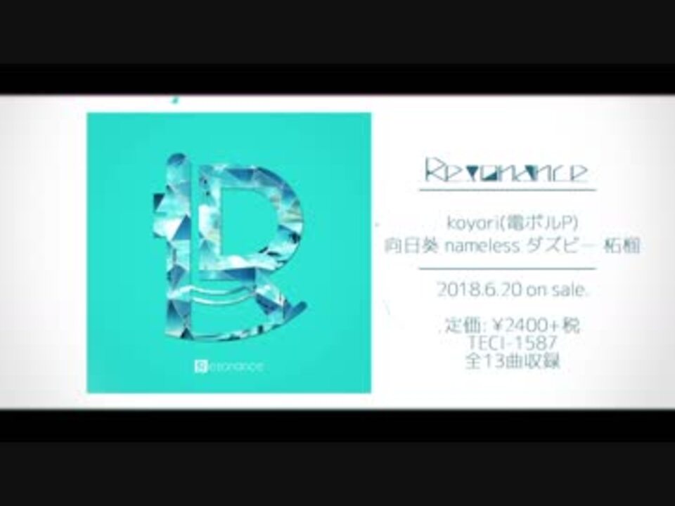 New Album『Resonance』2018年6月20日(水)発売<br /><br /><font color="#666666"><i>koyori(電ポルP)の楽曲を、女性ボーカリスト4名が鮮明に彩る。<br /></i></font><br />公式サイト <a href="http://koyori.site" target="_blank" rel="noopener nofollow">http://koyori.site</a><br />詳細ブログ <a href="https://ch.nicovideo.jp/article/ar1528693" target="_blank" rel="noopener">ar1528693</a><br /><br />全13曲収録 / ¥2,400+税<br /><br />ご予約はこちらから <a href="http://amzn.asia/5rW6XGb" target="_blank" rel="noopener nofollow">http://amzn.asia/5rW6XGb</a><br /><br />-Vocalists-<br /><br />向日葵<br /> - <a href="https://www.nicovideo.jp/mylist/9306672" target="_blank" rel="noopener">mylist/9306672</a><br /> - <a href="https://twitter.com/_himawari_1030" target="_blank" rel="noopener nofollow">https://twitter.com/_himawari_1030</a><br /><br />nameless<br /> - <a href="https://www.nicovideo.jp/mylist/43667452" target="_blank" rel="noopener">mylist/43667452</a><br /> - <a href="https://twitter.com/name__less_" target="_blank" rel="noopener nofollow">https://twitter.com/name__less_</a><br /><br />ダズビー<br /> - <a href="https://www.nicovideo.jp/mylist/18043113" target="_blank" rel="noopener">mylist/18043113</a><br /> - <a href="https://twitter.com/nicodaZzz" target="_blank" rel="noopener nofollow">https://twitter.com/nicodaZzz</a><br /><br />柘榴<br /> - <a href="https://www.nicovideo.jp/mylist/50718003" target="_blank" rel="noopener">mylist/50718003</a><br /> - <a href="https://twitter.com/zakuro_96" target="_blank" rel="noopener nofollow">https://twitter.com/zakuro_96</a><br /><br />Music: koyori(電ポルP)<br /> - <a href="https://www.nicovideo.jp/mylist/12125866" target="_blank" rel="noopener">mylist/12125866</a><br /> - <a href="http://twitter.com/koyokoyokoyori" target="_blank" rel="noopener nofollow">http://twitter.com/koyokoyokoyori</a><br /><br />Movie: 檀上大空<br /> - <a href="https://www.nicovideo.jp/mylist/37060601" target="_blank" rel="noopener">mylist/37060601</a><br /> - <a href="https://twitter.com/skyw315" target="_blank" rel="noopener nofollow">https://twitter.com/skyw315</a>