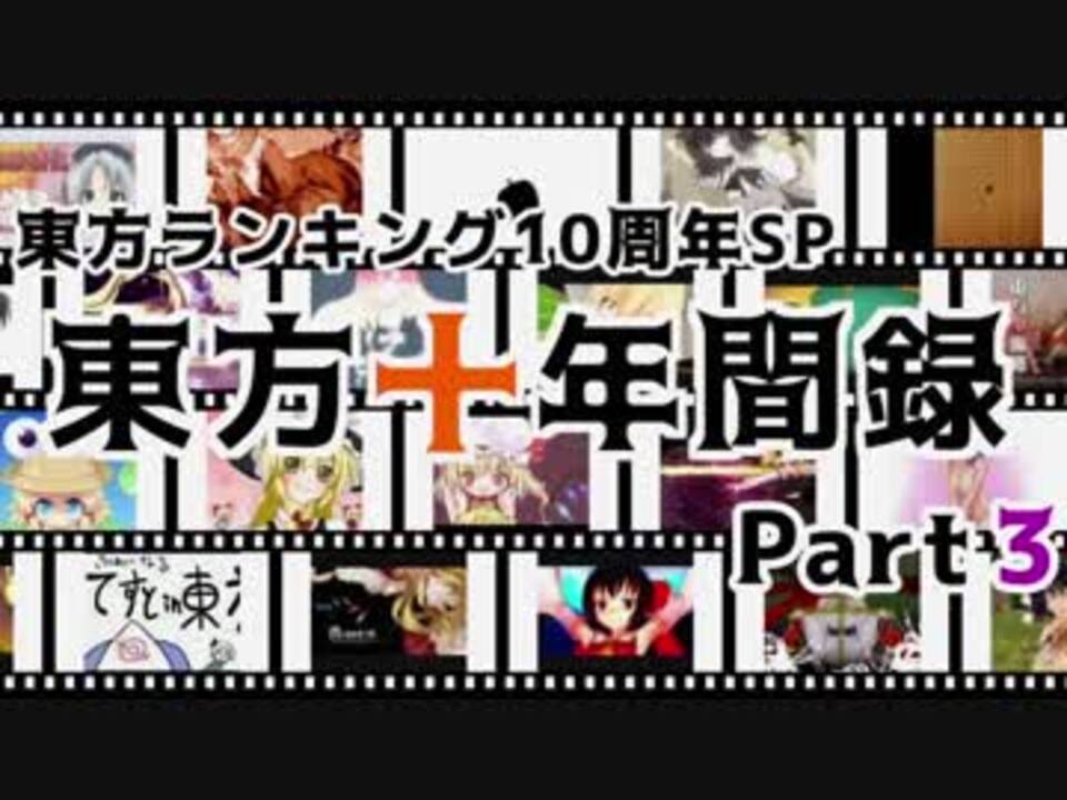 東方十年間録Part3になります。<br />Part3では、100位~31位を紹介します。<br /><br />■冒頭会話テキスト:チルノちゃん可愛いbot 様(月刊チルノランキング:<a href="https://www.nicovideo.jp/mylist/48286002" target="_blank" rel="noopener">mylist/48286002</a>)<br />■OP曲: えきすとらA(<a href="https://www.nicovideo.jp/watch/sm20114741" class="watch">sm20114741</a>) <br /><br />Part1:<a href="https://www.nicovideo.jp/watch/sm33365746" class="watch">sm33365746</a> Part2:<a href="https://www.nicovideo.jp/watch/sm33361904" class="watch">sm33361904</a> <br />Part3:これ Part4:<a href="https://www.nicovideo.jp/watch/sm33366906" class="watch">sm33366906</a> <br />プレイリスト:<a href="https://www.nicovideo.jp/mylist/62384188" target="_blank" rel="noopener">mylist/62384188</a> <br />