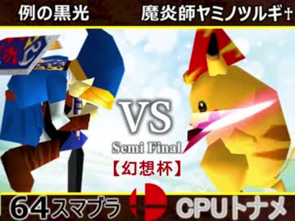 決勝に行くのは?!<br />※どちらが勝つかアンケ結果(Twitter調べ) <br />例の黒光(LI) 26% VS 魔炎師ヤミノツルギ♰(PI) 74%<br /><br /><font color="#0000ff"><u>※64スマブラCPUトナメ実況のwikiができた模様</u>→</font> <a href="https://wiki3.jp/cpu_64" target="_blank" rel="noopener nofollow">https://wiki3.jp/cpu_64</a><br /><br /><b><font size="5"><font color="#ff0000">次→</font></font></b>【<a href="https://www.nicovideo.jp/watch/sm33372968" class="watch">sm33372968</a>】※毎日投稿<br /><br />前【<a href="https://www.nicovideo.jp/watch/sm33366647" class="watch">sm33366647</a>】 一回戦第一試合【<a href="https://www.nicovideo.jp/watch/sm33292256" class="watch">sm33292256</a>】<br /> <br />幻想杯マイリスト【<a href="https://www.nicovideo.jp/mylist/62171629" target="_blank" rel="noopener">mylist/62171629</a>】 <br />64スマブラCPUトナメ実況part1まとめ【<a href="https://www.nicovideo.jp/mylist/60846861" target="_blank" rel="noopener">mylist/60846861</a>】<br />その他シリーズ【<a href="https://www.nicovideo.jp/mylist/12965027" target="_blank" rel="noopener">mylist/12965027</a>】<br /><br /><b><font color="#00bfff">Twitter</font></b>【<a href="https://twitter.com/niconicopppppp】" target="_blank" rel="noopener nofollow">https://twitter.com/niconicopppppp】</a><br /><b><font color="#ff4500">チャンネル</font></b>【<a href="https://ch.nicovideo.jp/p-desu" target="_blank" rel="noopener">ch.nicovideo.jp/p-desu</a>】
