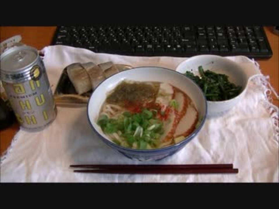 とろろ昆布が乗ったうどんです。<br />今回は、うどんスープで簡単に作っています。<br />スーパーで買ったバッテラとほうれん草の胡麻和えといただきます。<br />ちょっと甘めのつゆに昆布の味が絡んで旨いですよ。