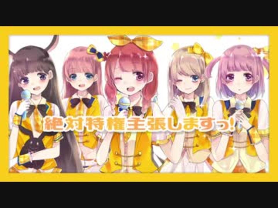 <br /><font color="#ffbf00" size="5">絶 対 権 限 発 動 中! </font><br /><br /><br /><font color="#ffff00" size="3">■ </font> Mix,Encode:よし( <a href="https://www.nicovideo.jp/mylist/40161268" target="_blank" rel="noopener">mylist/40161268</a> )@lala_yoshi<br /><font color="#ffbf00" size="3">■ </font> Illust:琥珀ましろ @mashiro1830<br /><font color="#ffff00" size="3">■ </font> Movie:りんごあむ<br /><br /><br /><font color="#ffbf00" size="3">■ </font>茜part:875* ( <a href="https://www.nicovideo.jp/mylist/54828778" target="_blank" rel="noopener">mylist/54828778</a> ) @87c0_5<br /><font color="#ffff00" size="3">■ </font>愛梨part:黒兎ウル ( <a href="https://www.nicovideo.jp/mylist/33564602" target="_blank" rel="noopener">mylist/33564602</a> ) @kurousagi_uru<br /><font color="#ffbf00" size="3">■ </font>藍子part:悠乃 ( <a href="https://www.nicovideo.jp/mylist/28695863" target="_blank" rel="noopener">mylist/28695863</a> ) @haruno_0505<br /><font color="#ffff00" size="3">■ </font>裕子part:lino ( <a href="https://www.nicovideo.jp/mylist/6686337" target="_blank" rel="noopener">mylist/6686337</a> ) @linosnow<br /><font color="#ffbf00" size="3">■ </font>輝子part:りんごあむ ( <a href="https://www.nicovideo.jp/mylist/37593678" target="_blank" rel="noopener">mylist/37593678</a> )@_amtyn<br /><br /><br />