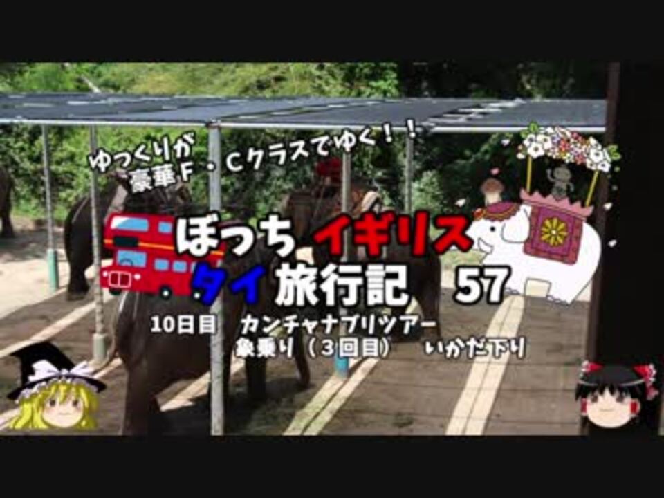 <font color="#ff0000" size="4"><u>※Youtubeで1話分、先行配信中 </u></font><br /><font color="#0000ff" size="4"> <a href="http://www.youtube.com/c/なめこのぼっち旅" target="_blank" rel="noopener nofollow">http://www.youtube.com/c/なめこのぼっち旅</a></font> <br /><br /><b> </b>今回はこの旅3度目の象乗り <br />もう飽きました・・・<br />そのあとはいかだ下り!<br />そんなことするんだろな~と期待していたら、<br />動画の通りでした・・・。<br />今回は動画的には退屈回になっちゃいました。<br /><br />第一話→<a href="https://www.nicovideo.jp/watch/sm32025927" class="watch">sm32025927</a><br /><br />第1章・・・東京編<br /> 第2章・・・出発編<br /> 第3章・・・イギリス編<br /> 第4章・・・移動編<br />第5章・・・タイ編<font color="#ff0000">←今ココ</font><br /> 第6章・・・帰路編<br /><br /><font color="#ff0000">コミュニティー→co2910020</font><br /> twitter→<a href="https://twitter.com/ryontan" target="_blank" rel="noopener nofollow">https://twitter.com/ryontan</a><br /><br /> <a href="https://www.nicovideo.jp/watch/sm33470074" class="watch">sm33470074</a>←前回 <font color="#ff0000">次回 58話→<a href="https://www.nicovideo.jp/watch/sm33508800" class="watch">sm33508800</a></font><br /><br />今作 イギリスタイ旅行記→<a href="https://www.nicovideo.jp/mylist/60044833" target="_blank" rel="noopener">mylist/60044833</a><br />今作 車中泊旅行記→<a href="https://www.nicovideo.jp/mylist/54706524" target="_blank" rel="noopener">mylist/54706524</a><br />前作 クルーズ旅行記→<a href="https://www.nicovideo.jp/mylist/57397685" target="_blank" rel="noopener">mylist/57397685</a><br />第5弾 ドイツ周遊記→<a href="https://www.nicovideo.jp/mylist/54938346" target="_blank" rel="noopener">mylist/54938346</a><br />第4弾 北海道旅行記→<a href="https://www.nicovideo.jp/mylist/52618057" target="_blank" rel="noopener">mylist/52618057</a><br />第3弾 アメリカ横断記→<a href="https://www.nicovideo.jp/mylist/48621785" target="_blank" rel="noopener">mylist/48621785</a><br />第2弾 イタリア周遊記→<a href="https://www.nicovideo.jp/mylist/45763559" target="_blank" rel="noopener">mylist/45763559</a><br />第1弾 NY旅行記→<a href="https://www.nicovideo.jp/mylist/44343854" target="_blank" rel="noopener">mylist/44343854</a><font color="#ff0000" size="5"><font color="#000000" size="2"><br /></font></font>
