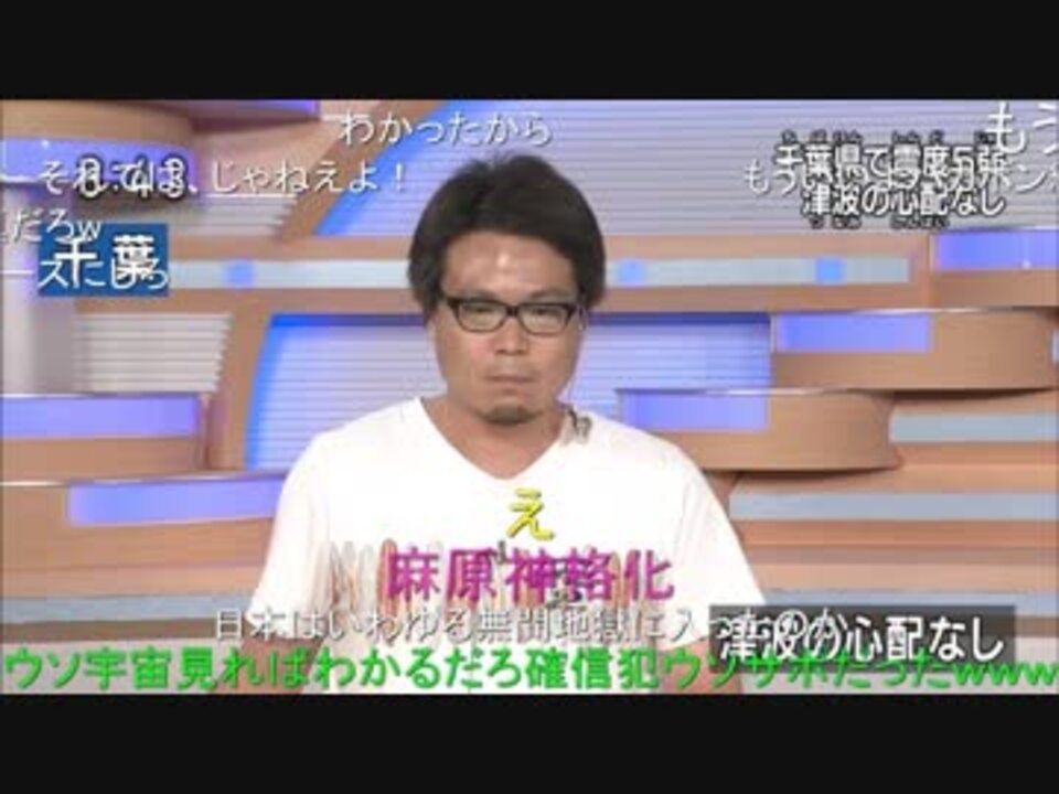 発生日時:2018年7月7日20時28分頃<br />震源地:千葉県東方沖(北緯35.1度、東経140.6度)<br />マグニチュード:6.0<br />震源の深さ:約50km<br />最大震度:5弱(千葉県北東部)<br />五十嵐ディレクター:<a href="#" class="seekTime" data-seekTime="19:11" onclick="seekNicoPlayer('#19:11'); return false;">#19:11</a>~