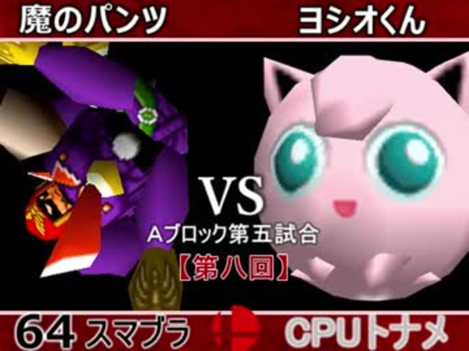 ここで負けるときついぞ~!<br />※どちらが勝つかアンケ結果(Twitter調べ) <br />魔のパンツ(FA) 48% VS ヨシオくん(PU) 52%<br /><br /><font color="#0000ff"><u>※64スマブラCPUトナメ実況のwikiができた模様</u>→</font> <a href="https://wiki3.jp/cpu_64" target="_blank" rel="noopener nofollow">https://wiki3.jp/cpu_64</a><br /><br /><b><font size="5"><font color="#ff0000">次→</font></font></b>【<a href="https://www.nicovideo.jp/watch/sm33555656" class="watch">sm33555656</a>】※毎日投稿<br /><br />前【<a href="https://www.nicovideo.jp/watch/sm33546630" class="watch">sm33546630</a>】 Aブロック第一試合【<a href="https://www.nicovideo.jp/watch/sm33462799" class="watch">sm33462799</a>】 <br />出場選手紹介【<a href="https://www.nicovideo.jp/watch/sm33435891" class="watch">sm33435891</a>】<br /> <br />第八回マイリスト【<a href="https://www.nicovideo.jp/mylist/62486112" target="_blank" rel="noopener">mylist/62486112</a>】 <br />64スマブラCPUトナメ実況part1まとめ【<a href="https://www.nicovideo.jp/mylist/60846861" target="_blank" rel="noopener">mylist/60846861</a>】<br />その他シリーズ【<a href="https://www.nicovideo.jp/mylist/12965027" target="_blank" rel="noopener">mylist/12965027</a>】<br /><br /><b><font color="#00bfff">Twitter</font></b>【<a href="https://twitter.com/niconicopppppp】" target="_blank" rel="noopener nofollow">https://twitter.com/niconicopppppp】</a><br /><b><font color="#ff4500">チャンネル</font></b>【<a href="https://ch.nicovideo.jp/p-desu" target="_blank" rel="noopener">ch.nicovideo.jp/p-desu</a>】