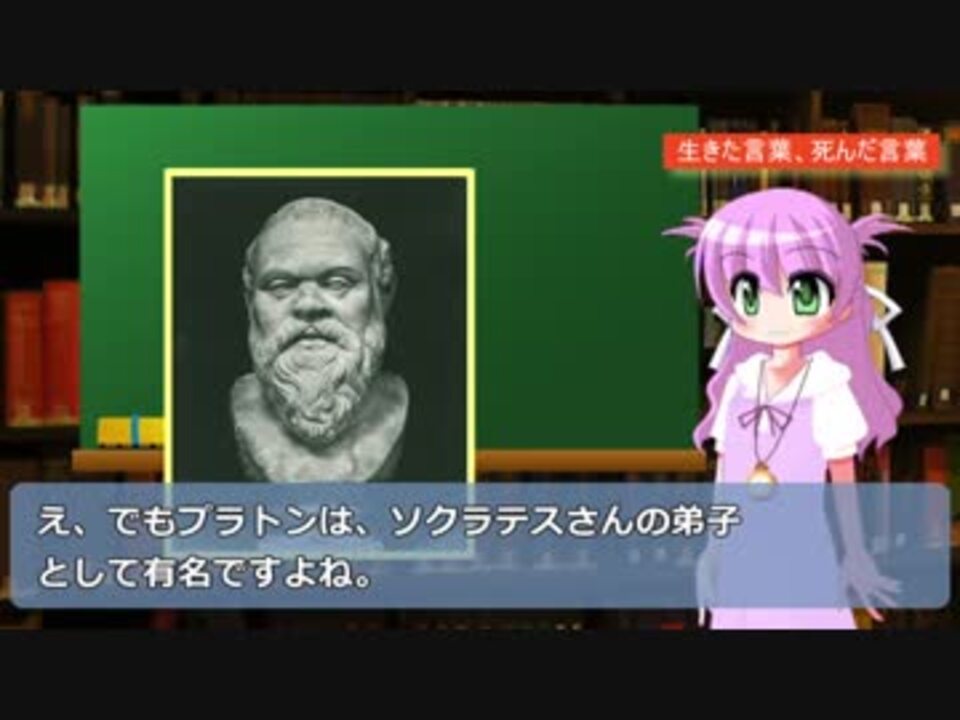 本編2作目です。<br>前回に引き続きテーマは「ソクラテス」<br>棒読みご容赦くださいm(_ _)m<br><br>【音声合成が苦手な方はブラウザバック推奨】 <br>ゆっくりではないです。<br><br>次→<a href="https://www.nicovideo.jp/watch/sm33593462" class="watch">sm33593462</a><br>前→<a href="https://www.nicovideo.jp/watch/sm33517984" class="watch">sm33517984</a><br>関連するショート哲学→<a href="https://www.nicovideo.jp/watch/sm33526707" class="watch">sm33526707</a><br><br>哲学解説シリーズ→<a href="https://www.nicovideo.jp/mylist/62686094" target="_blank" rel="noopener">mylist/62686094</a> <br>音楽解説シリーズ→<a href="https://www.nicovideo.jp/mylist/62900076" target="_blank" rel="noopener">mylist/62900076</a><br>学長のマイリス→<a href="https://www.nicovideo.jp/mylist/62906527" target="_blank" rel="noopener">mylist/62906527</a><br><br>★YouTubeチャンネル<br><a href="https://www.youtube.com/channel/UCZcAuDzzPn8Z5p-Ou9VB4Rw/" target="_blank" rel="noopener nofollow">https://www.youtube.com/channel/UCZcAuDzzPn8Z5p-Ou9VB4Rw/</a><br><br>★Twitter<br><a href="https://twitter.com/iki2academy" target="_blank" rel="noopener nofollow">https://twitter.com/iki2academy</a><br><br>※音声合成に「テキストーク」、キャラクターに「キャラクターなんとか機」、「えもふり」を使用させて頂きました。<br>アニメーション難しいです。少しずつ精進します(汗)<br>