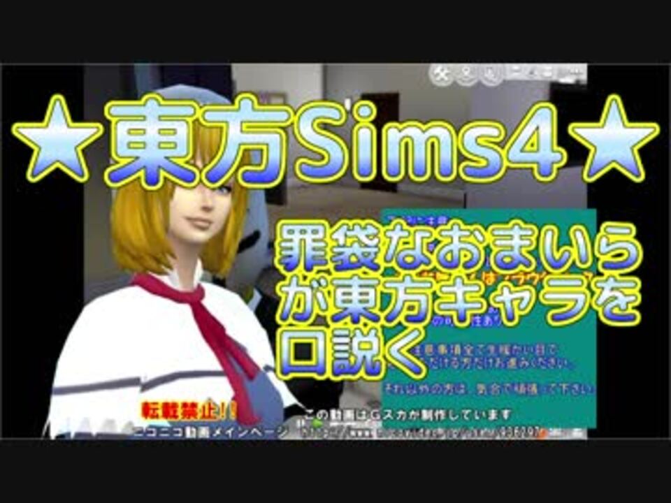 <font size="4"><font color="#0000ff"><b>アリス</b></font></font>を<font size="4"><font color="#ff0000"><b>嫁</b></font></font>にしようかと思ったわけだ、だが・・・<font size="4"><font color="#6aa84f"><b>凄い壁が立ちふさがった</b></font></font>・・・。<br>罪袋なおまいらがSims4で東方キャラを口説く動画なんだと思う。<br>詳しく知りたい人はブロガー参照<br><a href="http://skgura.blogspot.com/2018/07/sims4_23.html" target="_blank" rel="noopener nofollow">http://skgura.blogspot.com/2018/07/sims4_23.html</a><br><br><font size="5"><font color="#ff0000"><b>なお、東方キャラと罪袋が<u>イチャイチャするのを見たくない!</u><br>って人は絶対見ちゃいけません。</b></font></font><br><br>前回→<a href="https://www.nicovideo.jp/watch/sm33577851" class="watch">sm33577851</a> 次回→<a href="https://www.nicovideo.jp/watch/sm33596536" class="watch">sm33596536</a><br>画質マシ版 <a href="https://www.youtube.com/playlist?list=PLExqHFrEYm9GRsQ-O4bDxTsp_tWbEUnvM" target="_blank" rel="noopener nofollow">https://www.youtube.com/playlist?list=PLExqHFrEYm9GRsQ-O4bDxTsp_tWbEUnvM</a><br><br>動画で使用してる自作MOD一覧は次の場所に画像付きで記述してあります。<br><a href="http://skgura.blogspot.jp/2018/03/sims4mod_5.html" target="_blank" rel="noopener nofollow">http://skgura.blogspot.jp/2018/03/sims4mod_5.html</a><br><br>東方Sims4マイリスト <a href="https://www.nicovideo.jp/mylist/37230629" target="_blank" rel="noopener">mylist/37230629</a><br>生放送場所 co2497027<br>MOD制作講座 <a href="https://www.nicovideo.jp/watch/sm32091726" class="watch">sm32091726</a> <a href="https://www.nicovideo.jp/watch/sm32857145" class="watch">sm32857145</a><br><br>東方服装スキン arikasa様<br>配布場所:<a href="http://ch.nicovideo.jp/arikasa" target="_blank" rel="noopener nofollow">http://ch.nicovideo.jp/arikasa</a><br>宣伝者様<br>ゲスト様、いちこさん様、春日めぐみ様、神埼 裕様<br />━━━━━━━━━━━━━━━━━━━━━━━━━━━━━━<br><strong>背景フリー素材</strong> <a href="https://gska.hatenablog.jp/entry/GskSozaiya" target="_blank" rel="noopener nofollow">https://gska.hatenablog.jp/entry/GskSozaiya</a><br><br>すいません、宣伝者名記述は300pt以上です。<br>■■■■■■■■■■■■■■■■■■■■■■■■■■<br><span style="color: #0000ff;"><strong>怖い話不思議な話シリーズ1→<a href="https://www.nicovideo.jp/series/3376" target="_blank" rel="noopener">series/3376</a> 2→<a href="https://www.nicovideo.jp/series/71913" target="_blank" rel="noopener">series/71913</a></strong></span><br>■■■■■■■■■■■■■■■■■■■■■■■■■■<br><span style="color: #4a86e8;"><strong>東方キャラのゆっくりボイス設定 東方虹龍洞キャラあり</strong></span><br><a href="https://gska.hatenablog.jp/entry/yukkuri-touhou-voice" target="_blank" rel="noopener nofollow">https://gska.hatenablog.jp/entry/yukkuri-touhou-voice</a><br><br><span style="color: #4a86e8;"><strong>配布素材一覧</strong></span> <a href="https://gska.hatenablog.jp/entry/2019/11/10/222031" target="_blank" rel="noopener nofollow">https://gska.hatenablog.jp/entry/2019/11/10/222031</a><br><span style="color: #4a86e8;"><strong>素材利用規約</strong></span> <a href="https://gska.hatenablog.jp/entry/gsk-Material-rule" target="_blank" rel="noopener nofollow">https://gska.hatenablog.jp/entry/gsk-Material-rule</a><br>