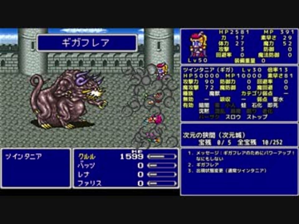 ティンカー・ベルの妖精の粉を浴び、信じる心を持てば空を飛べる。<br><br>★縛り内容★<br>魔法のみ(白黒時召青)<br>全裸<br>魔法以外の行動不可<br>魔法を使えるジョブのみ<br>アクティブスピード1<br>宝箱回収率100%<br>アイテムの使用は移動中のセーブ可能な場所でのみ<br>勝率0%確定したら最小限のその時だけの解放を考えて続行する<br>ボスを即死等であっさり倒したら使わない戦闘も頑張る<br><br>FF5一覧…<a href="https://www.nicovideo.jp/mylist/56239646" target="_blank" rel="noopener">mylist/56239646</a><br><br>字幕のみPart58…<a href="https://youtu.be/ALxZlfwHj1M" target="_blank" rel="noopener nofollow">https://youtu.be/ALxZlfwHj1M</a><br><br>○前回○ Part57…<a href="https://www.nicovideo.jp/watch/sm33580560" class="watch">sm33580560</a><br>○次回○ Part59…<a href="https://www.nicovideo.jp/watch/sm33599993" class="watch">sm33599993</a><br><br>Youtube版 …<a href="https://youtu.be/5xyL80O2sMI" target="_blank" rel="noopener nofollow">https://youtu.be/5xyL80O2sMI</a><br /><br>ふよふよしているの<br>絵:横沢さわらさん VOICEVOX:WhiteCUL<br><br>【シリーズ】<br>くうねるきゃんぷ … <a href="https://www.nicovideo.jp/series/516069" target="_blank" rel="noopener">series/516069</a><br>お写んぽ! … <a href="https://www.nicovideo.jp/series/435756" target="_blank" rel="noopener">series/435756</a><br>様子がおかしい! … <a href="https://www.nicovideo.jp/series/418875" target="_blank" rel="noopener">series/418875</a><br>FF7 魔法マテリアのみ初期防具ガールズ一人旅ASM … <a href="https://www.nicovideo.jp/series/438696" target="_blank" rel="noopener">series/438696</a><br>きんかつ!V-STROM1050XT … <a href="https://www.nicovideo.jp/series/144466" target="_blank" rel="noopener">series/144466</a><br>FF6 魔法のみ全裸ガールズ一人旅AS1 … <a href="https://www.nicovideo.jp/series/9438" target="_blank" rel="noopener">series/9438</a><br>おバイク!GLADIUS400 ABS … <a href="https://www.nicovideo.jp/series/68579" target="_blank" rel="noopener">series/68579</a><br>FF5 魔法のみ全裸一人旅AS1 … <a href="https://www.nicovideo.jp/series/9432" target="_blank" rel="noopener">series/9432</a><br>DQ3 呪文のみ全裸一人旅 … <a href="https://www.nicovideo.jp/series/9416" target="_blank" rel="noopener">series/9416</a><br>DQ2 ムーンブルクの王女一人旅 … <a href="https://www.nicovideo.jp/series/9414" target="_blank" rel="noopener">series/9414</a><br>DQ1 全裸 … <a href="https://www.nicovideo.jp/series/9412" target="_blank" rel="noopener">series/9412</a><br>FE 紋章の謎 天馬騎士単騎 第2部 英雄戦争 … <a href="https://www.nicovideo.jp/series/9404" target="_blank" rel="noopener">series/9404</a><br>FE 紋章の謎 天馬騎士単騎 第1部 暗黒戦争 … <a href="https://www.nicovideo.jp/series/9401" target="_blank" rel="noopener">series/9401</a><br>聖剣2 全裸プリム一人旅 武器Lv1など … <a href="https://www.nicovideo.jp/series/9396" target="_blank" rel="noopener">series/9396</a><br>ロマサガ2 魔術士不得意武器のみ … <a href="https://www.nicovideo.jp/series/9388" target="_blank" rel="noopener">series/9388</a><br>ロマサガ1 術法のみ一人旅で各イベント攻略 … <a href="https://www.nicovideo.jp/series/9386" target="_blank" rel="noopener">series/9386</a><br><br>SNSとか色々なリンク … <a href="https://lit.link/Unaa" target="_blank" rel="noopener nofollow">https://lit.link/Unaa</a>