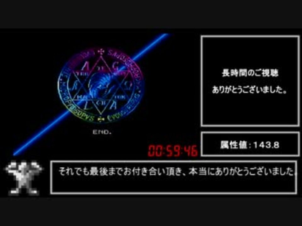 SFC版真・女神転生Ⅰ最後のRTAです。<br />沢山のコメント、マイリスト、広告ありがとうございました。<br /><br />プレイ環境:SFC版(Wii VC)<br />計測区間:「NEW GAME」から「END.」の最後のピリオドが表示されるまで<br />条件:何でもあり<br /><br />Part 1→<a href="https://www.nicovideo.jp/watch/sm33491714" class="watch">sm33491714</a><br />マイリスト→<a href="https://www.nicovideo.jp/mylist/62594145" target="_blank" rel="noopener">mylist/62594145</a><br /><br />RTA動画を公開するHPを作っています。<br />中身はまだまだなのですがよろしくお願いします。<br />→<a href="http://cliverta.web.fc2.com/index.html" target="_blank" rel="noopener nofollow">http://cliverta.web.fc2.com/index.html</a>
