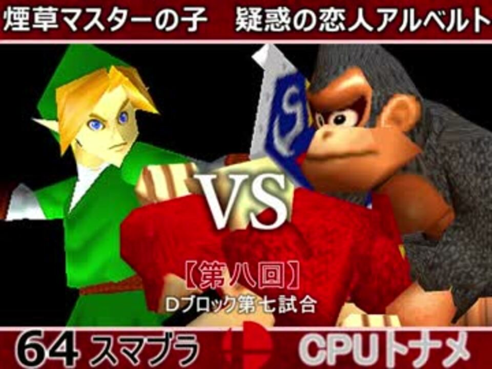 過去の記憶が甦る<br />※どちらが勝つかアンケ結果(Twitter調べ) <br />煙草マスターの子(LI) 88% VS 疑惑の恋人アルベルト(DK) 12%<br /><br /><font color="#0000ff"><u>※64スマブラCPUトナメ実況のwikiができた模様</u>→</font> <a href="https://wiki3.jp/cpu_64" target="_blank" rel="noopener nofollow">https://wiki3.jp/cpu_64</a><br /><br /><b><font size="5"><font color="#ff0000">次→</font></font></b>【<a href="https://www.nicovideo.jp/watch/sm33623397" class="watch">sm33623397</a>】※毎日投稿<font color="#ff0000"><u><br /></u></font><br />前【<a href="https://www.nicovideo.jp/watch/sm33618996" class="watch">sm33618996</a>】 Dブロック第一試合 【<a href="https://www.nicovideo.jp/watch/sm33479489" class="watch">sm33479489</a>】 <br />Aブロック第一試合【<a href="https://www.nicovideo.jp/watch/sm33462799" class="watch">sm33462799</a>】 <br />出場選手紹介【<a href="https://www.nicovideo.jp/watch/sm33435891" class="watch">sm33435891</a>】<br /> <br />第八回マイリスト【<a href="https://www.nicovideo.jp/mylist/62486112" target="_blank" rel="noopener">mylist/62486112</a>】 <br />64スマブラCPUトナメ実況part1まとめ【<a href="https://www.nicovideo.jp/mylist/60846861" target="_blank" rel="noopener">mylist/60846861</a>】<br />その他シリーズ【<a href="https://www.nicovideo.jp/mylist/12965027" target="_blank" rel="noopener">mylist/12965027</a>】<br /><br /><b><font color="#00bfff">Twitter</font></b>【<a href="https://twitter.com/niconicopppppp】" target="_blank" rel="noopener nofollow">https://twitter.com/niconicopppppp】</a><br /><b><font color="#ff4500">チャンネル</font></b>【<a href="https://ch.nicovideo.jp/p-desu" target="_blank" rel="noopener">ch.nicovideo.jp/p-desu</a>】