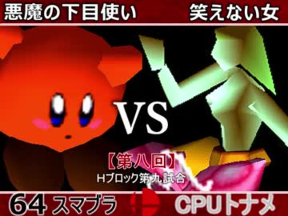 下目の運命や如何に<br />※どちらが勝つかアンケ結果(Twitter調べ) <br />悪魔の下目使い(KI) 64% VS 笑えない女(SA) 36%<br /><br /><font color="#0000ff"><u>※64スマブラCPUトナメ実況のwikiができた模様</u>→</font> <a href="https://wiki3.jp/cpu_64" target="_blank" rel="noopener nofollow">https://wiki3.jp/cpu_64</a><br /><br /><b><font size="5"><font color="#ff0000">次→</font></font></b>【<a href="https://www.nicovideo.jp/watch/sm33740932" class="watch">sm33740932</a>】※毎日投稿 <font color="#ff0000"><u>※これからの投稿は1日1投稿となります</u></font><font color="#ff0000"><u><br /></u></font><br />前【<a href="https://www.nicovideo.jp/watch/sm33730942" class="watch">sm33730942</a>】 Hブロック第一試合【<a href="https://www.nicovideo.jp/watch/sm33502065" class="watch">sm33502065</a>】 <br />Aブロック第一試合【<a href="https://www.nicovideo.jp/watch/sm33462799" class="watch">sm33462799</a>】 <br />出場選手紹介【<a href="https://www.nicovideo.jp/watch/sm33435891" class="watch">sm33435891</a>】<br /> <br />第八回マイリスト【<a href="https://www.nicovideo.jp/mylist/62486112" target="_blank" rel="noopener">mylist/62486112</a>】 <br />64スマブラCPUトナメ実況part1まとめ【<a href="https://www.nicovideo.jp/mylist/60846861" target="_blank" rel="noopener">mylist/60846861</a>】<br />その他シリーズ【<a href="https://www.nicovideo.jp/mylist/12965027" target="_blank" rel="noopener">mylist/12965027</a>】<br /><br /><b><font color="#00bfff">Twitter</font></b>【<a href="https://twitter.com/niconicopppppp】" target="_blank" rel="noopener nofollow">https://twitter.com/niconicopppppp】</a><br /><b><font color="#ff4500">チャンネル</font></b>【<a href="https://ch.nicovideo.jp/p-desu" target="_blank" rel="noopener">ch.nicovideo.jp/p-desu</a>】