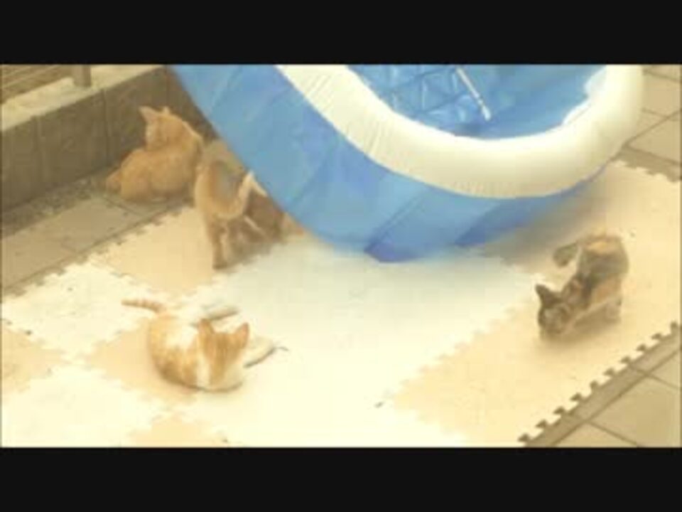 庭にプールを干してたらいつの間にか野良子猫のたまり場になってた