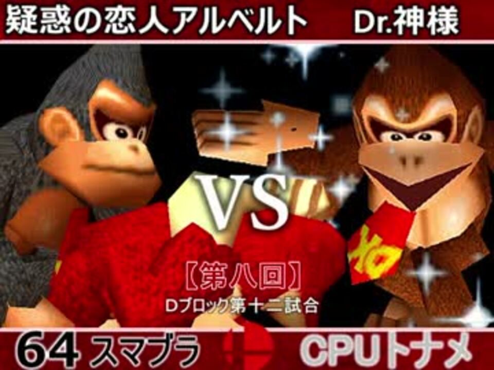 格付けチェック<br />※どちらが勝つかアンケ結果(Twitter調べ) <br />疑惑の恋人アルベルト(DK) 60% VS Dr.神様(DK) 40%<br /><br /><font color="#0000ff"><u>※64スマブラCPUトナメ実況のwikiができた模様</u>→</font> <a href="https://wiki3.jp/cpu_64" target="_blank" rel="noopener nofollow">https://wiki3.jp/cpu_64</a><br /><br /><b><font size="5"><font color="#ff0000">次→</font></font></b>【<a href="https://www.nicovideo.jp/watch/sm33791256" class="watch">sm33791256</a>】※毎日投稿 <font color="#ff0000"><u>※これからの投稿は1日1投稿となります</u></font><font color="#ff0000"><u><br /></u></font><br />前【<a href="https://www.nicovideo.jp/watch/sm33779649" class="watch">sm33779649</a>】 Dブロック第一試合【<a href="https://www.nicovideo.jp/watch/sm33479489" class="watch">sm33479489</a>】 <br />Aブロック第一試合【<a href="https://www.nicovideo.jp/watch/sm33462799" class="watch">sm33462799</a>】 <br />出場選手紹介【<a href="https://www.nicovideo.jp/watch/sm33435891" class="watch">sm33435891</a>】<br /> <br />第八回マイリスト【<a href="https://www.nicovideo.jp/mylist/62486112" target="_blank" rel="noopener">mylist/62486112</a>】 <br />64スマブラCPUトナメ実況part1まとめ【<a href="https://www.nicovideo.jp/mylist/60846861" target="_blank" rel="noopener">mylist/60846861</a>】<br />その他シリーズ【<a href="https://www.nicovideo.jp/mylist/12965027" target="_blank" rel="noopener">mylist/12965027</a>】<br /><br /><b><font color="#00bfff">Twitter</font></b>【<a href="https://twitter.com/niconicopppppp】" target="_blank" rel="noopener nofollow">https://twitter.com/niconicopppppp】</a><br /><b><font color="#ff4500">チャンネル</font></b>【<a href="https://ch.nicovideo.jp/p-desu" target="_blank" rel="noopener">ch.nicovideo.jp/p-desu</a>】