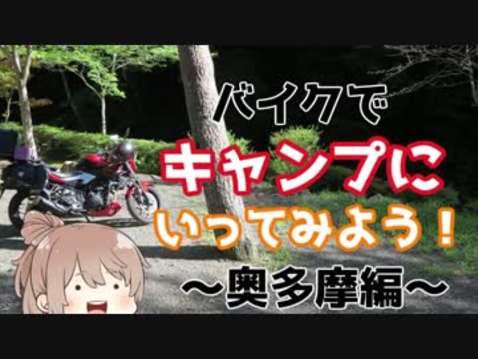 <font size="4"><font color="#cc0000"><b>晴れた!キャンプ行くぞ!</b></font></font><br>日本列島にまさかのツイン台風襲来!!<br>土日の天気が危ぶまれたが、台風は昨日のうちに通過!絶好の天気に!<br><br>しかし、台風の爪痕はしっかりと残っているのであった・・・<br><br>前:かき氷!<a href="https://www.nicovideo.jp/watch/sm33669840" class="watch">sm33669840</a> 後:アルカパ!<a href="https://www.nicovideo.jp/watch/sm34064408" class="watch">sm34064408</a><br>いままでのバイク動画 <a href="https://www.nicovideo.jp/mylist/56778869" target="_blank" rel="noopener">mylist/56778869</a><br><font size="1">※当動画は、使用許諾素材と自前素材で作成しております。</font><br><br><font size="2">※追記<br>「電話確認せえや!」ってコメントをいただいたので、ちょっと言い訳 。<br>普段、データ用と通話用のケータイを分けているのですが、<br>その・・・通話用だけ忘れてしまって・・・<br>(´・ω・`)言い訳になってねえや</font><font size="2"><br></font>