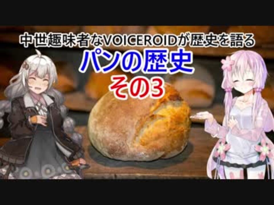 今回でパンの話は完結です。<br />その3はパン焼き窯とパン屋に関する法令そして昔ながらの薪窯でのパン焼き再現です。<br /><a href="#" class="seekTime" data-seekTime="01:21" onclick="seekNicoPlayer('#01:21'); return false;">#01:21</a> 古代エジプトの製パンの様子<br /><a href="#" class="seekTime" data-seekTime="02:15" onclick="seekNicoPlayer('#02:15'); return false;">#02:15</a> パン焼き窯の話<br /><a href="#" class="seekTime" data-seekTime="04:34" onclick="seekNicoPlayer('#04:34'); return false;">#04:34</a> パン屋に関する法令の話<br /><a href="#" class="seekTime" data-seekTime="08:05" onclick="seekNicoPlayer('#08:05'); return false;">#08:05</a> 昔ながらの薪窯でのパン焼き再現<br /><a href="#" class="seekTime" data-seekTime="11:04" onclick="seekNicoPlayer('#11:04'); return false;">#11:04</a> 編集後記@東北ずん子 追加ボイス付き<br /><br />話し手がゆかりさんで聞き手があかりちゃんです。<br /><br />前回: <font><a href="https://www.nicovideo.jp/watch/sm33744987" class="watch">sm33744987</a></font> マイリスト:<a href="https://www.nicovideo.jp/mylist/63052858" target="_blank" rel="noopener">mylist/63052858</a> 次回:キリスト教の修道院 <a href="https://www.nicovideo.jp/watch/sm33968184" class="watch">sm33968184</a><br /><br />【参考リンク】<br />中世パン図鑑 <a href="https://togetter.com/li/727369" target="_blank" rel="noopener nofollow">https://togetter.com/li/727369</a><br />昔ながらの製パン再現動画 <a href="https://youtu.be/8B_7AFYmkYo" target="_blank" rel="noopener nofollow">https://youtu.be/8B_7AFYmkYo</a>
