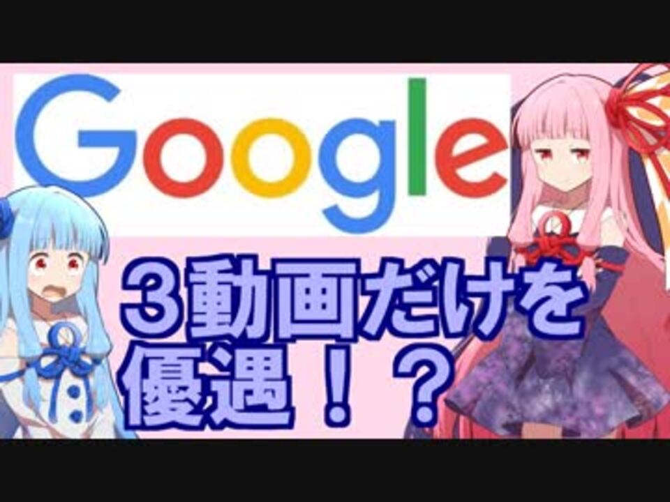 Googleは動画3個だけを優遇しているので、活用しようぜ。<br /><br /><br />別に裏ワザではないけど・・・。<br /><br />Q. で、再生数伸びた?<br />A. 微妙ですね・・・。<br />Q. 人によって違うのでは?<br />A. 何人かとテストしましたが、並び順はともかく出る動画は同じでした。<br /><br /><font color="#ff0000"><b>◇いつものマイリスト</b></font> <br />Part1リスト:<a href="https://www.nicovideo.jp/mylist/62982810" target="_blank" rel="noopener">mylist/62982810</a><br /><br /><font color="#ff0000"><b>◇投稿者について </b></font><br />twitter:<a href="https://twitter.com/moco7800" target="_blank" rel="noopener nofollow">https://twitter.com/moco7800</a>
