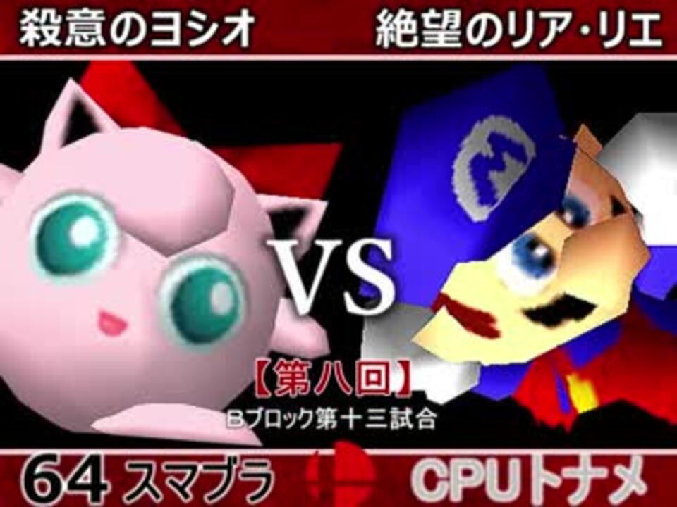 殺意は負けたら終わり リア・リエはリベンジ戦<br />※どちらが勝つかアンケ結果(Twitter調べ) <br />殺意のヨシオ(PU) 59% VS 絶望のリア・リエ(MA) 41%<br /><br /><font color="#0000ff"><u>※64スマブラCPUトナメ実況のwikiができた模様</u>→</font> <a href="https://wiki3.jp/cpu_64" target="_blank" rel="noopener nofollow">https://wiki3.jp/cpu_64</a><br /><br /><b><font size="5"><font color="#ff0000">次→</font></font></b>【<a href="https://www.nicovideo.jp/watch/sm33838732" class="watch">sm33838732</a>】※毎日投稿 <font color="#ff0000"><u>※これからの投稿は1日1投稿となります</u></font><font color="#ff0000"><u><br /></u></font><br />前【<a href="https://www.nicovideo.jp/watch/sm33834397" class="watch">sm33834397</a>】 Bブロック第一試合 【<a href="https://www.nicovideo.jp/watch/sm33467334" class="watch">sm33467334</a>】 <br />Aブロック第一試合【<a href="https://www.nicovideo.jp/watch/sm33462799" class="watch">sm33462799</a>】 <br />出場選手紹介【<a href="https://www.nicovideo.jp/watch/sm33435891" class="watch">sm33435891</a>】<br /> <br />第八回マイリスト【<a href="https://www.nicovideo.jp/mylist/62486112" target="_blank" rel="noopener">mylist/62486112</a>】 <br />64スマブラCPUトナメ実況part1まとめ【<a href="https://www.nicovideo.jp/mylist/60846861" target="_blank" rel="noopener">mylist/60846861</a>】<br />その他シリーズ【<a href="https://www.nicovideo.jp/mylist/12965027" target="_blank" rel="noopener">mylist/12965027</a>】<br /><br /><b><font color="#00bfff">Twitter</font></b>【<a href="https://twitter.com/niconicopppppp】" target="_blank" rel="noopener nofollow">https://twitter.com/niconicopppppp】</a><br /><b><font color="#ff4500">チャンネル</font></b>【<a href="https://ch.nicovideo.jp/p-desu" target="_blank" rel="noopener">ch.nicovideo.jp/p-desu</a>】