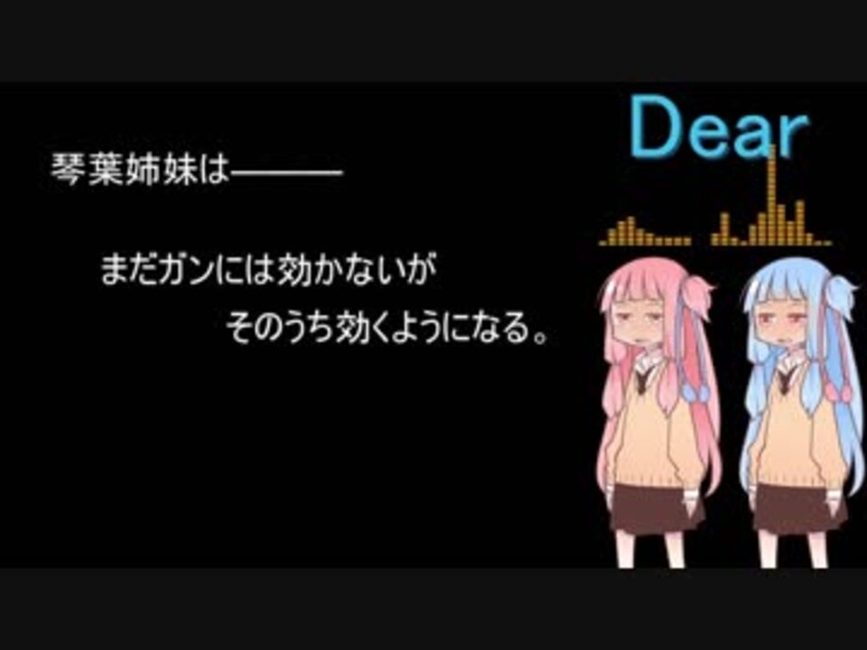 9月24日に行われる第二回歌ボWSに参加する前にとりあえず今の限界を知りたいので初音ミクの曲の中でもよくカラオケで歌う「Dear」を歌わせてみました。<br /><br />今回歌わせて思ったのが茜ちゃんと葵ちゃんを合わせた時になぜか意図しない音(葵ちゃんがどむどむ言う)が発生してしまうことがありました。EQで切ったりちょっとズラしてみたりしましたが結局消えはしなかったのでそのまま残してあります。 曲をよく聞くと葵ちゃんがむにゃむにゃ何か言ってるはずなので探してみてください。<br /><br />去年作ったやつ→<a href="https://www.nicovideo.jp/watch/sm32099891" class="watch">sm32099891</a><br />歌ボのマイリスト→<a href="https://www.nicovideo.jp/mylist/63086926" target="_blank" rel="noopener">mylist/63086926</a>