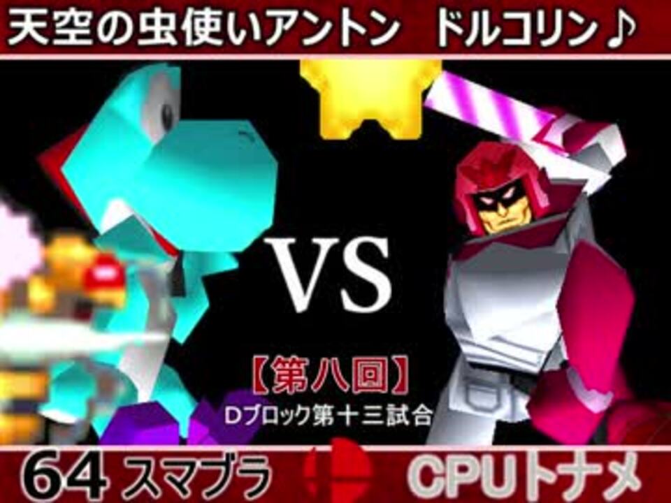 はちそろそろ?<br />※どちらが勝つかアンケ結果(Twitter調べ) <br />天空の虫使いアントン(YO) 37% VS ドルコリン♪(FA) 63%<br /><br /><font color="#0000ff"><u>※64スマブラCPUトナメ実況のwikiができた模様</u>→</font> <a href="https://wiki3.jp/cpu_64" target="_blank" rel="noopener nofollow">https://wiki3.jp/cpu_64</a><br /><br /><b><font size="5"><font color="#ff0000">次→</font></font></b>【<a href="https://www.nicovideo.jp/watch/sm33872737" class="watch">sm33872737</a>】※毎日投稿 <font color="#ff0000"><u>※これからの投稿は1日1投稿となります</u></font><font color="#ff0000"><u><br /></u></font><br />前【<a href="https://www.nicovideo.jp/watch/sm33857422" class="watch">sm33857422</a>】 Dブロック第一試合【<a href="https://www.nicovideo.jp/watch/sm33479489" class="watch">sm33479489</a>】 <br />Aブロック第一試合【<a href="https://www.nicovideo.jp/watch/sm33462799" class="watch">sm33462799</a>】 <br />出場選手紹介【<a href="https://www.nicovideo.jp/watch/sm33435891" class="watch">sm33435891</a>】<br /> <br />第八回マイリスト【<a href="https://www.nicovideo.jp/mylist/62486112" target="_blank" rel="noopener">mylist/62486112</a>】 <br />64スマブラCPUトナメ実況part1まとめ【<a href="https://www.nicovideo.jp/mylist/60846861" target="_blank" rel="noopener">mylist/60846861</a>】<br />その他シリーズ【<a href="https://www.nicovideo.jp/mylist/12965027" target="_blank" rel="noopener">mylist/12965027</a>】<br /><br /><b><font color="#00bfff">Twitter</font></b>【<a href="https://twitter.com/niconicopppppp】" target="_blank" rel="noopener nofollow">https://twitter.com/niconicopppppp】</a><br /><b><font color="#ff4500">チャンネル</font></b>【<a href="https://ch.nicovideo.jp/p-desu" target="_blank" rel="noopener">ch.nicovideo.jp/p-desu</a>】