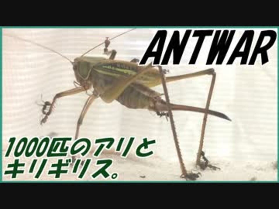 <a href="https://www.nicovideo.jp/watch/sm33860371" class="watch">sm33860371</a>←もどる 次へ→ <a href="https://www.nicovideo.jp/watch/sm33889336" class="watch">sm33889336</a><br /><br />火曜・木曜・土曜の週3回更新。 <br /><br /> 蟻戦争マイリスト→<u><a href="https://www.nicovideo.jp/mylist/56298874" target="_blank" rel="noopener">mylist/56298874</a></u><br /><br /> ∧__∧<br /> (・ω・)<風邪はちょっと良くなりました。皆さんも季節の変わり目には風邪に気を付けてくださいね!<br /><br />「アリとキリギリス」前編→<a href="https://www.nicovideo.jp/watch/sm33850225" class="watch">sm33850225</a><br /><br />蟻は高度な社会性を持つ昆虫である。<br /> ~The ANT is advanced social insect.~<br /><br /> 卵を産む役、飼育する役、兵隊役などに分かれ、1つのコミュニティを形成する。<br /> ~ANTs constitute one comunity.ANTs have the part(childbirth,bring