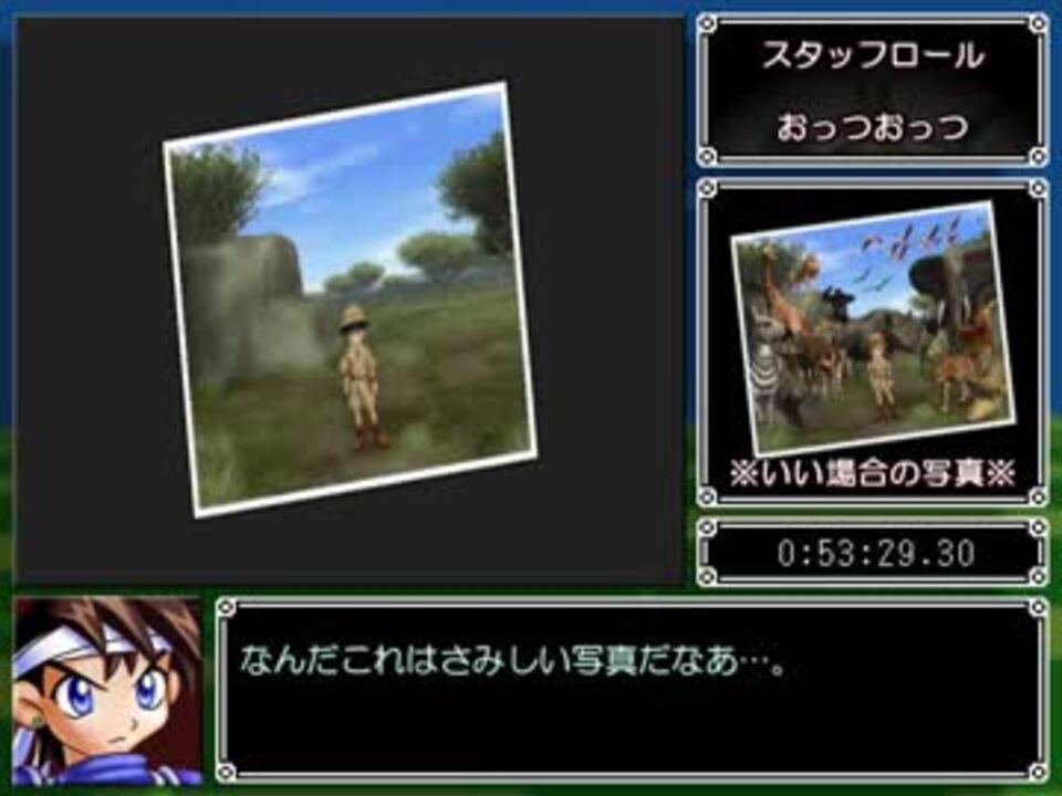 アフリカも ポケモンスナップもやったことないんですけど、<br>やっぱり似ているんですかね…?(にわかゲーマー)<br><br>Part1:<a href="https://www.nicovideo.jp/watch/sm33902426" class="watch">sm33902426</a><br>Part2:ここ<br><br>~~~~ <br><br>奇想天外マイリスト→ <a href="https://www.nicovideo.jp/mylist/63435427" target="_blank" rel="noopener">mylist/63435427</a><br><br>制作RTAパート1集→ <a href="https://www.nicovideo.jp/mylist/53648285" target="_blank" rel="noopener">mylist/53648285</a><br><br><br /><br>◆◇◆◇<br>バーチャルいいゲーマー : <a href="https://www.nicovideo.jp/series/169043" target="_blank" rel="noopener">series/169043</a><br>バーチャルいいゲーマー2: <a href="https://www.nicovideo.jp/series/354647" target="_blank" rel="noopener">series/354647</a><br>バーチャルいいゲーマー3: <a href="https://www.nicovideo.jp/series/456136" target="_blank" rel="noopener">series/456136</a><br>バーチャルいいゲーマー4: <a href="https://www.nicovideo.jp/series/519895" target="_blank" rel="noopener">series/519895</a><br>バーチャルいいゲーマー5: <a href="https://www.nicovideo.jp/series/535323" target="_blank" rel="noopener">series/535323</a><br><br>いい道 : <a href="https://www.nicovideo.jp/series/34469" target="_blank" rel="noopener">series/34469</a><br>RTA動画パート1集 : <a href="https://www.nicovideo.jp/mylist/53648285" target="_blank" rel="noopener">mylist/53648285</a><br>◆◇◆◇<br><br><span style="color: #ff0000; font-size: 16px;"><strong>生放送(毎日19:10~)<br>今シーズンは……「スーパーダンガンロンパ2」ほかをプレイ中……。</strong></span><br><span style="color: #ff0000; font-size: 18px;"><strong>⇒ <a href="https://www.twitch.tv/usui_iigame" target="_blank" rel="noopener nofollow">https://www.twitch.tv/usui_iigame</a></strong></span><br><br><strong>★FanBox ⇒ <a href="https://usui-iigame.fanbox.cc/" target="_blank" rel="noopener nofollow">https://usui-iigame.fanbox.cc/</a></strong><br><br><span style="font-size: 10px;">Twitter(フォローしてね) ⇒ <a href="https://twitter.com/usui_iigame" target="_blank" rel="noopener nofollow">https://twitter.com/usui_iigame</a><br>Youtube(毎日19:00~世界最速プレミア配信)⇒ <a href="https://www.youtube.com/channel/UCyEph50XfHDSig0umxV4_lQ" target="_blank" rel="noopener nofollow">https://www.youtube.com/channel/UCyEph50XfHDSig0umxV4_lQ</a><br>攻略Wiki(非公式) ⇒ <a href="https://seesaawiki.jp/virtual-ii-gamer/" target="_blank" rel="noopener nofollow">https://seesaawiki.jp/virtual-ii-gamer/</a></span>