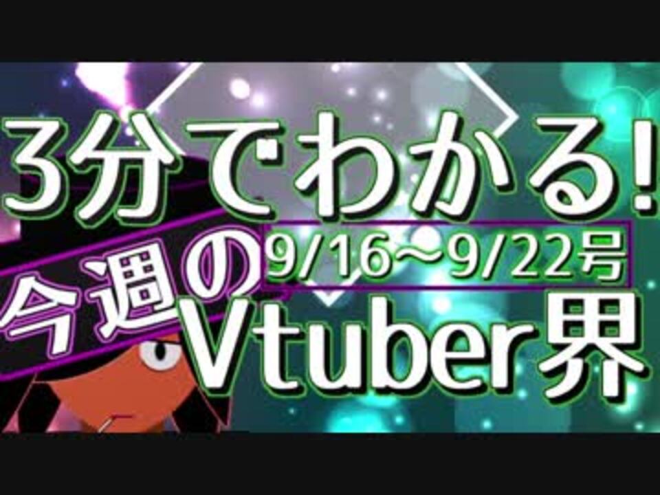 <font color="#cc0000">新作: Vtuberは「不完全」だからこそ面白い →<a href="https://www.nicovideo.jp/watch/sm33898179" class="watch">sm33898179</a></font><font color="#cc0000"><br /></font><br />やあ、バーチャル名探偵佐藤ホームズだ。<br />今回は僕が調査しているVtuber業界の今週(9/16~9/22)の出来事をまとめてみたよ。<br />忙しくてVtuberを追いかけきれない人、今週を振り返りたい人、新規開拓をしたい人にぜひ見てもらいたい!<br /><br />YouTubeのチャンネル登録と、感想や改善点のコメントをよろしく頼む!<br />→<a href="https://www.youtube.com/channel/UCOXumOju1oSdyHysRfnQAmA" target="_blank" rel="noopener nofollow">https://www.youtube.com/channel/UCOXumOju1oSdyHysRfnQAmA</a><br /><br />Twitter: <br /><a href="https://twitter.com/satouholmes" target="_blank" rel="noopener nofollow">https://twitter.com/satouholmes</a> <br /><br />質問箱:<br /><a href="https://peing.net/ja/satouholmes" target="_blank" rel="noopener nofollow">https://peing.net/ja/satouholmes</a><br /><br />ニュースの詳細へのリンク→<a href="https://ch.nicovideo.jp/article/ar1673208" target="_blank" rel="noopener">ar1673208</a><br /><br /><a href="https://www.nicovideo.jp/watch/sm33866510" class="watch">sm33866510</a><前回【9/9~9/15】 …<a href="https://www.nicovideo.jp/mylist/62367529" target="_blank" rel="noopener">mylist/62367529</a>…次回【9/23~9/29】><a href="https://www.nicovideo.jp/watch/sm33944879" class="watch">sm33944879</a><br /><br /><br />考察シリーズマイリスト> <a href="https://www.nicovideo.jp/mylist/63032703" target="_blank" rel="noopener">mylist/63032703</a><br /><br />名探偵のVtuberおすすめセットその1><a href="https://www.nicovideo.jp/watch/sm33528513" class="watch">sm33528513</a> <br /><br />