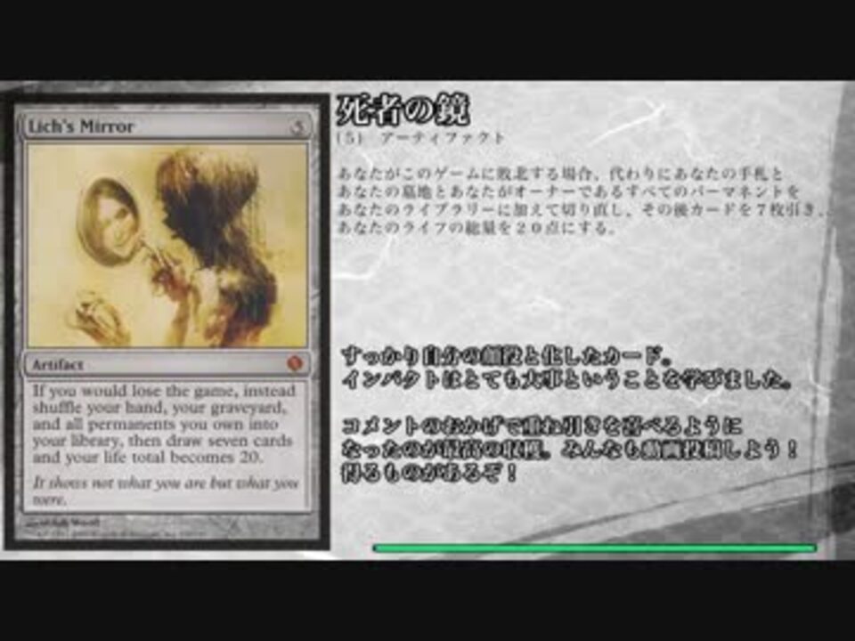 あんまり忙しくない人向け自分語り。<br />自分が実際のゲームで使った経験のあるもの限定。画像も普段使いのバージョン。<br /><br />▽概要<br />・twitterで軽い気持ちでやったらえらいことになりました。<br />・TLに投稿するのが憚られる数になったので動画にしました。<br />・省エネ制作なので字幕動画です。<br />・いつものボイロアバター発言ではなく中の人全開なのでお気をつけ下さい。<br /><br />▽普段作ってるもの<br />・MO動画:<a href="https://www.nicovideo.jp/mylist/60650047" target="_blank" rel="noopener">mylist/60650047</a><br />・架空EDH:<a href="https://www.nicovideo.jp/mylist/61144943" target="_blank" rel="noopener">mylist/61144943</a>
