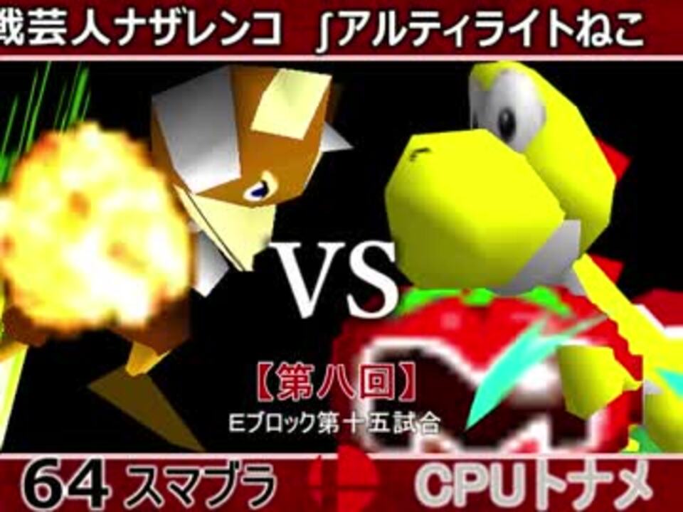 勝ったほうが進出!<br />※どちらが勝つかアンケ結果(Twitter調べ) <br />戦芸人ナザレンコ(FO) 48% VS ∫アルティライトねこ(YO) 52%<br /><br /><font color="#0000ff"><u>※64スマブラCPUトナメ実況のwikiができた模様</u>→</font> <a href="https://wiki3.jp/cpu_64" target="_blank" rel="noopener nofollow">https://wiki3.jp/cpu_64</a><br /><br /><b><font size="5"><font color="#ff0000">次→</font></font></b>【<a href="https://www.nicovideo.jp/watch/sm33954798" class="watch">sm33954798</a>】※毎日投稿 <font color="#ff0000"><u>※これからの投稿は1日1投稿となります</u></font><font color="#ff0000"><u><br /></u></font><br />前【<a href="https://www.nicovideo.jp/watch/sm33936450" class="watch">sm33936450</a>】 Eブロック第一試合【<a href="https://www.nicovideo.jp/watch/sm33486398" class="watch">sm33486398</a>】 <br />Aブロック第一試合【<a href="https://www.nicovideo.jp/watch/sm33462799" class="watch">sm33462799</a>】 <br />出場選手紹介【<a href="https://www.nicovideo.jp/watch/sm33435891" class="watch">sm33435891</a>】<br /> <br />第八回マイリスト【<a href="https://www.nicovideo.jp/mylist/62486112" target="_blank" rel="noopener">mylist/62486112</a>】 <br />64スマブラCPUトナメ実況part1まとめ【<a href="https://www.nicovideo.jp/mylist/60846861" target="_blank" rel="noopener">mylist/60846861</a>】<br />その他シリーズ【<a href="https://www.nicovideo.jp/mylist/12965027" target="_blank" rel="noopener">mylist/12965027</a>】<br /><br /><b><font color="#00bfff">Twitter</font></b>【<a href="https://twitter.com/niconicopppppp" target="_blank" rel="noopener nofollow">https://twitter.com/niconicopppppp</a> 】<br /><b><font color="#ff4500">チャンネル</font></b>【<a href="https://ch.nicovideo.jp/p-desu" target="_blank" rel="noopener">ch.nicovideo.jp/p-desu</a>】