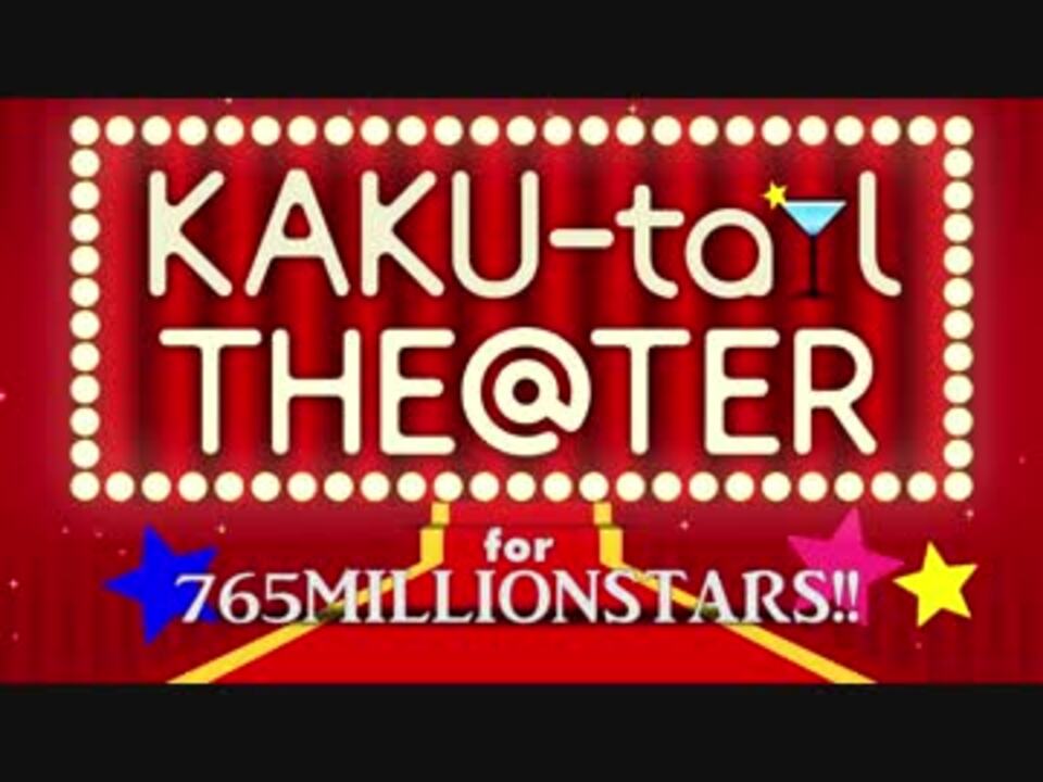 新しいパーティの開演です! <br><br>あのニコマスの定番イベント、「KAKU-tail」が<br>「KAKU-tail THE@TER for 765MILLIONSTARS!!」として、<br>おなじみ765PRO ALLSTARSの13人にミリオンライブの39人のアイドルを迎え、52人体制で復活!<br><br>開催期間:<s>2019年2月9日(土)</s> 2019年2月8日(金)〜11日(祝) <br>募集人数:<font size="4"><b>104名</b></font>(増枠しました!) <br>参加申込締切:<b><font color="#ff0000" size="5">2018年10月19日 23:59</font> </b><br><br>参加申込: <a href="https://goo.gl/forms/8hM77TAGkLS42mxi1" target="_blank" rel="noopener nofollow">https://goo.gl/forms/8hM77TAGkLS42mxi1</a> <br>テーマ募集:<a href="https://goo.gl/forms/07I4dRef47yllzNd2" target="_blank" rel="noopener nofollow">https://goo.gl/forms/07I4dRef47yllzNd2</a> <br><br>詳細は公式ブロマガから!<br><a href="http://ch.nicovideo.jp/kakutailth" target="_blank" rel="noopener nofollow">http://ch.nicovideo.jp/kakutailth</a><br>Twitter: <a href="https://twitter.com/kakutail_th" target="_blank" rel="noopener nofollow">https://twitter.com/kakutail_th</a><br>ハッシュタグ: #KAKUtail <a href="https://twitter.com/hashtag/KAKUtail" target="_blank" rel="noopener nofollow">https://twitter.com/hashtag/KAKUtail</a><br><br>ご参加、ご視聴、お待ちしております!<br><br>※動画内のクレジットはすべて敬称略となります。<br>