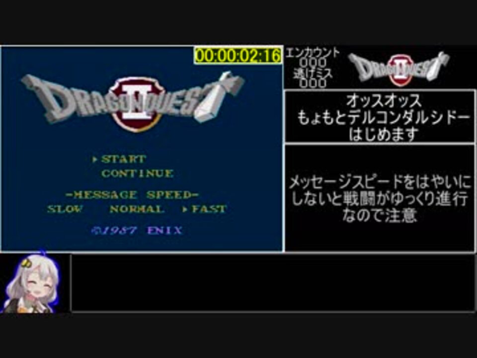 (パート物は)初投稿です。<br><a href="https://www.nicovideo.jp/watch/sm33776375" class="watch">sm33776375</a> ←前作 | 次回→ <a href="https://www.nicovideo.jp/watch/sm34078150" class="watch">sm34078150</a><br>スタート~デルコンダル(1回目)まで<br><br>S端子付きのケーブルを購入しましたが<br>S端子は仕様上ニューファミコンには使えないようです…残念<br><br>先駆者様達の動画<br>おねえちゃん→ <a href="https://www.nicovideo.jp/watch/sm32243723" class="watch">sm32243723</a><br>ずん子さん→ <a href="https://www.nicovideo.jp/watch/sm33419207" class="watch">sm33419207</a> <br>同志でっかいのさん→ <a href="https://www.nicovideo.jp/watch/sm33320732" class="watch">sm33320732</a><br><br>投稿した物達→<a href="https://www.nicovideo.jp/mylist/63545864" target="_blank" rel="noopener">mylist/63545864</a><br><br>計測区間:電源ON~The End表示まで<br>プレイ環境:ニューファミコン実機 、GV-USB2(コンポジット接続)<br>録画環境:アマレコTV<br><br>この動画で利用している株式会社スクウェア・エニックスを代表とする共同著作者が権利を所有する著作物及びスギヤマ工房有限会社が権利を所有する楽曲の転載・配布は禁止いたします。<br>© 1987 ARMOR PROJECT/BIRD STUDIO/SPIKE CHUNSOFT/SQUARE ENIX All Rights Reserved.<br>© SUGIYAMA KOBO