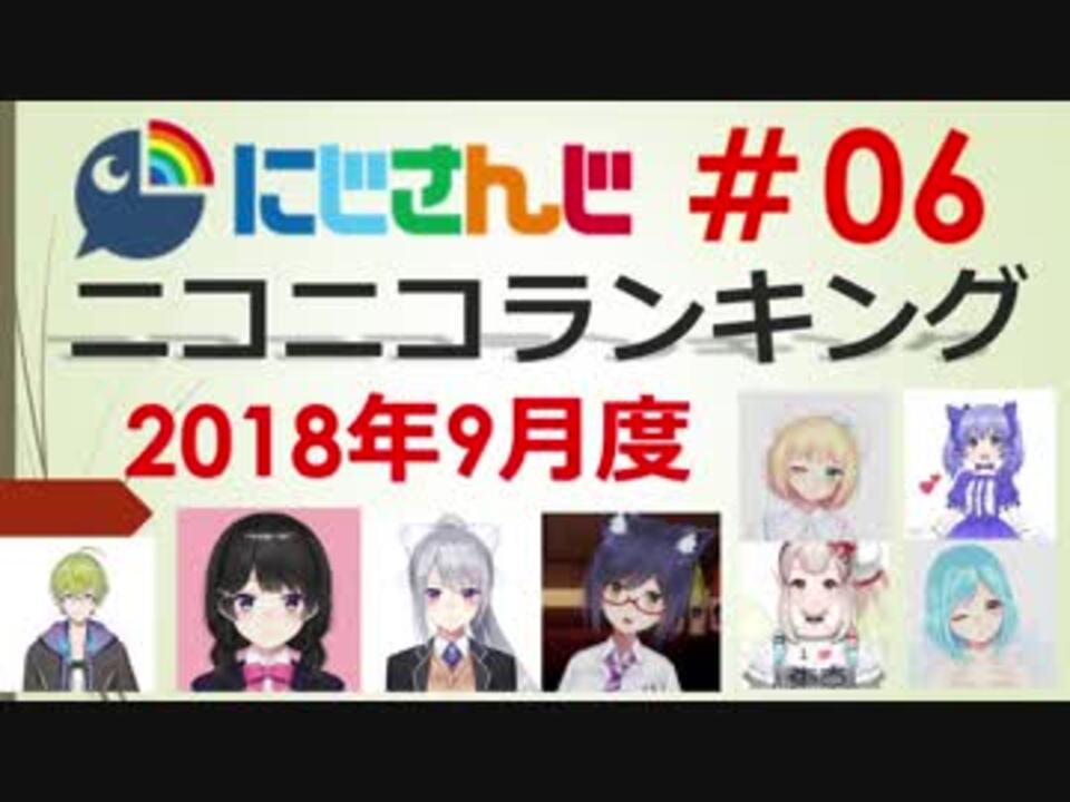 ■集計期間:2018年<font color="#ff0000" size="4">9</font><font color="#ff0000" size="4">月1日</font><font color="#262626" size="2">0時</font><font color="#262626" size="3">~</font><font color="#ff0000" size="4">9月30日</font><font size="2">24時</font><br />■集計方法:再生数+(コメント数×補正値)+(マイリスト登録数×<font color="#ff0000">25</font><font color="#262626">)</font><br />■集計対象:タグ 「にじさんじ」がついている動画<br />──────<br />プレイリスト:<a href="https://www.nicovideo.jp/mylist/63579080" target="_blank" rel="noopener">mylist/63579080</a><br />──────<br />#00 (2月~3月度):<a href="https://www.nicovideo.jp/watch/sm33266538" class="watch">sm33266538</a> | #01 (4月度):<a href="https://www.nicovideo.jp/watch/sm33201034" class="watch">sm33201034</a> |<br />#02 (5月度):<a href="https://www.nicovideo.jp/watch/sm33368701" class="watch">sm33368701</a> | #03 (6月度):<a href="https://www.nicovideo.jp/watch/sm33497508" class="watch">sm33497508</a> | <br />#04 (7月度):<a href="https://www.nicovideo.jp/watch/sm33652966" class="watch">sm33652966</a>| #05 (8月度):<a href="https://www.nicovideo.jp/watch/sm33817339" class="watch">sm33817339</a> | <br />#06 (9月度):いまここ| #07 (10月度):11月10日ごろ | <br />──────<br /><br />お待たせしました。2018年9月度のランキングです。<br /><br />動画投稿者の皆さん、素敵な動画を本当にありがとうございます。<br /><br />