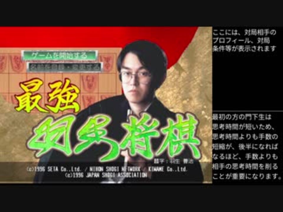 6年越しの大幅更新!<br />アマ初段を誇る最強(1996年当時)の思考ルーチンにTASさんが挑む!<br />※アマ初段の相手は6:44あたりから<br /><br />前記録→<a href="https://www.nicovideo.jp/watch/sm18502670" class="watch">sm18502670</a><br /><br />追記回数:8771(Botによる試行を除く)<br />キーファイル<br /><a href="https://drive.google.com/file/d/1hj7kav1jxDIKM1AQnXU2SWzcmmLmB0vX/view?usp=sharing" target="_blank" rel="noopener nofollow">https://drive.google.com/file/d/1hj7kav1jxDIKM1AQnXU2SWzcmmLmB0vX/view?usp=sharing</a><br /><br />制作<br />緑SM64(<a href="https://www.nicovideo.jp/mylist/18912402" target="_blank" rel="noopener">mylist/18912402</a> /Twitter:@MidoriSM64)<br />マルス(<a href="https://www.nicovideo.jp/user/19289538" target="_blank" rel="noopener">user/19289538</a> /Twitter:@25_marth_25)<br />しゃぶろう(<a href="https://www.nicovideo.jp/mylist/33647728" target="_blank" rel="noopener">mylist/33647728</a> /Twitter:@Syabrou)