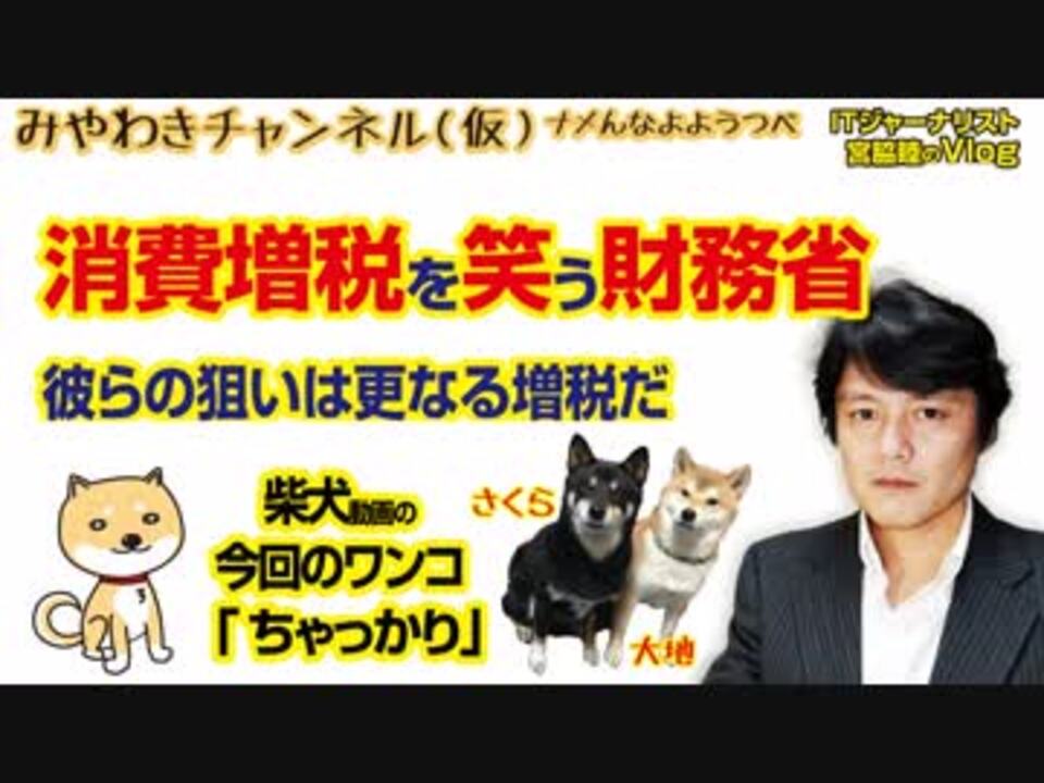 10月15日安倍晋三首相は、あらためて「消費税増税」を明言した。<br />笑うのは「財務省」だ。増税すれば景気は悪化する。なにより歴史が雄弁に物語る。<br />2%の「消費税還元セール」の解禁にしても、その狙いは財務省による更なる増税にある。<br /><br /><br /><br />マスコミでは言えないこと#243Restart087<br />オリジナル2018年10月15日配信<br /><br />番組の最後に「柴犬」のコーナーがあります。<br />今回のワンコ「ちゃっかり」<br /><br /><br />■わんこ総集編はこちらから!<br />何かあっても大丈夫、のはず。仮にこの「ワンコチャンネル」になにかあれば・・・オッス、○○と。<br />今回のワンコ総集編〜さくら&大地〜<br /><a href="https://www.youtube.com/channel/UChwY..." target="_blank" rel="noopener nofollow">https://www.youtube.com/channel/UChwY...</a><br /><br />■ニコニコ動画<br /><a href="http://www.nicovideo.jp/user/13610165" target="_blank" rel="noopener nofollow">http://www.nicovideo.jp/user/13610165</a><br />■FRESH LIVE<br /><a href="https://freshlive.tv/miyawaki-ch" target="_blank" rel="noopener nofollow">https://freshlive.tv/miyawaki-ch</a><br />■FC2動画<br /><a href="https://video.fc2.com/account/16696711" target="_blank" rel="noopener nofollow">https://video.fc2.com/account/16696711</a><br />■YouTube(理不尽に消えることあり)<br /><a href="https://www.youtube.com/c/AtsushiMiyawaki" target="_blank" rel="noopener nofollow">https://www.youtube.com/c/AtsushiMiyawaki</a><br /><br />■いつ「消える」かわかりません。<br />そこでオフィシャルサイトで「非常用連絡先」をご確認ください。<br />「みやチャン(仮)」公式サイト「MiyawakiNewsNetwork」<br /><a href="http://www.miyawakiatsushi.net" target="_blank" rel="noopener nofollow">http://www.miyawakiatsushi.net</a><br /><br />■理不尽に消えたとき、以下で情報配信しております。ぜひ、ご登録ください。<br /><br />■ツイッター<br /><a href="https://twitter.com/miyawakiatsushi" target="_blank" rel="noopener nofollow">https://twitter.com/miyawakiatsushi</a><br />■Facebook<br /><a href="https://www.facebook.com/miyawakiatsushi" target="_blank" rel="noopener nofollow">https://www.facebook.com/miyawakiatsushi</a>