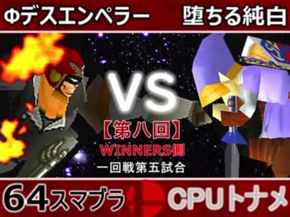 トーナメントで勝ったことのないデスエンペラーどうなる?!<br>※どちらが勝つかアンケ結果(Twitter調べ) <br>Фデスエンペラー(FA) 65% VS 堕ちる純白(LI) 35%<br><br><font color="#0000ff"><u>※64スマブラCPUトナメ実況のwikiができた模様</u>→</font> <a href="https://wiki3.jp/cpu_64" target="_blank" rel="noopener nofollow">https://wiki3.jp/cpu_64</a><br><br><b><font color="#ff0000">決勝トナメのPVを作成していただきました</font></b>【<a href="https://www.nicovideo.jp/watch/sm33974576" class="watch">sm33974576</a>】ありがとうございます!!!<br><b><font size="5"><font color="#ff0000">次→</font></font></b>【<a href="https://www.nicovideo.jp/watch/sm34072630" class="watch">sm34072630</a>】※毎日投稿 <br><br>前【<a href="https://www.nicovideo.jp/watch/sm34063577" class="watch">sm34063577</a>】 一回戦第一試合【<a href="https://www.nicovideo.jp/watch/sm34042071" class="watch">sm34042071</a>】 <br>予選Aブロック第一試合【<a href="https://www.nicovideo.jp/watch/sm33462799" class="watch">sm33462799</a>】 <br>出場選手紹介【<a href="https://www.nicovideo.jp/watch/sm33435891" class="watch">sm33435891</a>】<br> <br>第八回マイリスト【<a href="https://www.nicovideo.jp/mylist/62486112" target="_blank" rel="noopener">mylist/62486112</a>】 <br>64スマブラCPUトナメ実況part1まとめ【<a href="https://www.nicovideo.jp/mylist/60846861" target="_blank" rel="noopener">mylist/60846861</a>】<br>その他シリーズ【<a href="https://www.nicovideo.jp/mylist/12965027" target="_blank" rel="noopener">mylist/12965027</a>】<br><br><b><font color="#00bfff">Twitter</font></b>【<a href="https://twitter.com/niconicopppppp" target="_blank" rel="noopener nofollow">https://twitter.com/niconicopppppp</a> 】<br><b><font color="#ff4500">チャンネル</font></b>【<a href="https://ch.nicovideo.jp/p-desu" target="_blank" rel="noopener">ch.nicovideo.jp/p-desu</a>】