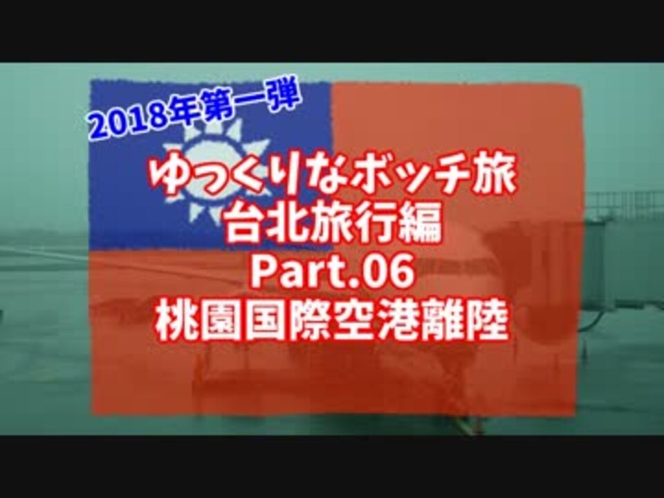 【ゆっくり】ゆっくりなボッチ旅 台北旅行編 2018 Part.06 桃園国際空港離陸【ボッチ】<br>3日目<br>桃園国際空港離陸<br><br>2018年一月の三連休を利用して台北へ行ってきました。<br>雨で取れ高が少なかったため、超短編でいきます。<br>旅は三日目、最終日。<br>もう朝一から空港に移動し、帰国便で飛び立ちます。<br><br>Twitter: @elmarit44<br><br>次:<a href="https://www.nicovideo.jp/watch/sm34149247" class="watch">sm34149247</a><br>前:<a href="https://www.nicovideo.jp/watch/sm34018662" class="watch">sm34018662</a><br>Part.01はこちら:<a href="https://www.nicovideo.jp/watch/sm33664175" class="watch">sm33664175</a><br>2018年台北旅行:<a href="https://www.nicovideo.jp/mylist/62967775" target="_blank" rel="noopener">mylist/62967775</a><br><br>□過去のシリーズ<br>2017年ニューヨーク旅行:<a href="https://www.nicovideo.jp/mylist/59688559" target="_blank" rel="noopener">mylist/59688559</a><br>2017年台北旅行:<a href="https://www.nicovideo.jp/mylist/58686511" target="_blank" rel="noopener">mylist/58686511</a><br><br>□撮影機材<br>SONY HDR-AS300<br>Panasonic LUMIX DMC-GX7MK2<br><br>□動画作成<br>・ゆっくりMovie Maker3<br> 饅頭遣いのおもちゃ箱:<a href="http://manjubox.net/" target="_blank" rel="noopener nofollow">http://manjubox.net/</a><br>・AviUtl<br> AviUtlのお部屋:<a href="http://spring-fragrance.mints.ne.jp/aviutl/" target="_blank" rel="noopener nofollow">http://spring-fragrance.mints.ne.jp/aviutl/</a><br>・x264guiEx<br> rigayaの日記兼メモ帳:<a href="http://rigaya34589.blog135.fc2.com/" target="_blank" rel="noopener nofollow">http://rigaya34589.blog135.fc2.com/</a><br>・けいふぉんと<br> すもももじ:<a href="http://font.sumomo.ne.jp/font_1.html" target="_blank" rel="noopener nofollow">http://font.sumomo.ne.jp/font_1.html</a><br>・イラスト<br> いらすとや:<a href="http://www.irasutoya.com/" target="_blank" rel="noopener nofollow">http://www.irasutoya.com/</a><br>・効果音<br> 無料効果音で遊ぼう!:<a href="http://taira-komori.jpn.org/transfer01.html" target="_blank" rel="noopener nofollow">http://taira-komori.jpn.org/transfer01.html</a><br>・BGM<br> 音楽研究所:<a href="http://www.asahi-net.or.jp/~HB9T-KTD/music/musj.html" target="_blank" rel="noopener nofollow">http://www.asahi-net.or.jp/~HB9T-KTD/music/musj.html</a><br><br>□他動画<br><br>お時間ございましたら、以下もご覧ください<br>ダイビング動画:<a href="https://www.nicovideo.jp/mylist/45801800" target="_blank" rel="noopener">mylist/45801800</a><br>