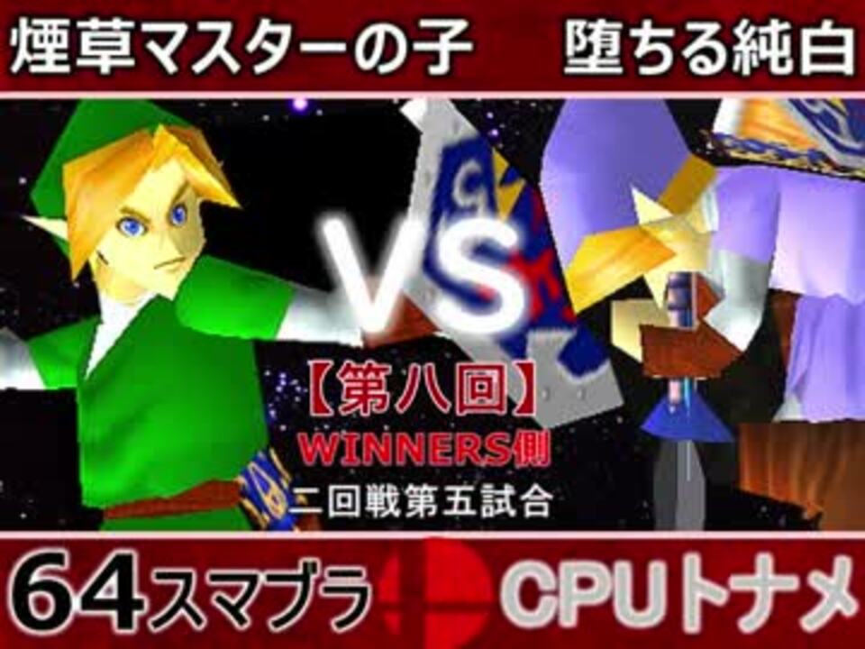激熱なリンク対決!<br>※どちらが勝つかアンケ結果(Twitter調べ) <br>煙草マスターの子(LI) 80% VS 堕ちる純白(LI) 20%<br><br><font color="#0000ff"><u>※64スマブラCPUトナメ実況のwikiができた模様</u>→</font> <a href="https://wiki3.jp/cpu_64" target="_blank" rel="noopener nofollow">https://wiki3.jp/cpu_64</a><br><br><b><font color="#ff0000">決勝トナメのPVを作成していただきました</font></b>【<a href="https://www.nicovideo.jp/watch/sm33974576" class="watch">sm33974576</a>】ありがとうございます!!!<br><b><font size="5"><font color="#ff0000">次→</font></font></b>【<a href="https://www.nicovideo.jp/watch/sm34102099" class="watch">sm34102099</a>】※毎日投稿 <br><br>前【<a href="https://www.nicovideo.jp/watch/sm34102052" class="watch">sm34102052</a>】 一回戦第一試合【<a href="https://www.nicovideo.jp/watch/sm34042071" class="watch">sm34042071</a>】 <br>予選Aブロック第一試合【<a href="https://www.nicovideo.jp/watch/sm33462799" class="watch">sm33462799</a>】 <br>出場選手紹介【<a href="https://www.nicovideo.jp/watch/sm33435891" class="watch">sm33435891</a>】<br> <br>第八回マイリスト【<a href="https://www.nicovideo.jp/mylist/62486112" target="_blank" rel="noopener">mylist/62486112</a>】 <br>64スマブラCPUトナメ実況part1まとめ【<a href="https://www.nicovideo.jp/mylist/60846861" target="_blank" rel="noopener">mylist/60846861</a>】<br>その他シリーズ【<a href="https://www.nicovideo.jp/mylist/12965027" target="_blank" rel="noopener">mylist/12965027</a>】<br><br><b><font color="#00bfff">Twitter</font></b>【<a href="https://twitter.com/niconicopppppp" target="_blank" rel="noopener nofollow">https://twitter.com/niconicopppppp</a> 】<br><b><font color="#ff4500">チャンネル</font></b>【<a href="https://ch.nicovideo.jp/p-desu" target="_blank" rel="noopener">ch.nicovideo.jp/p-desu</a>】