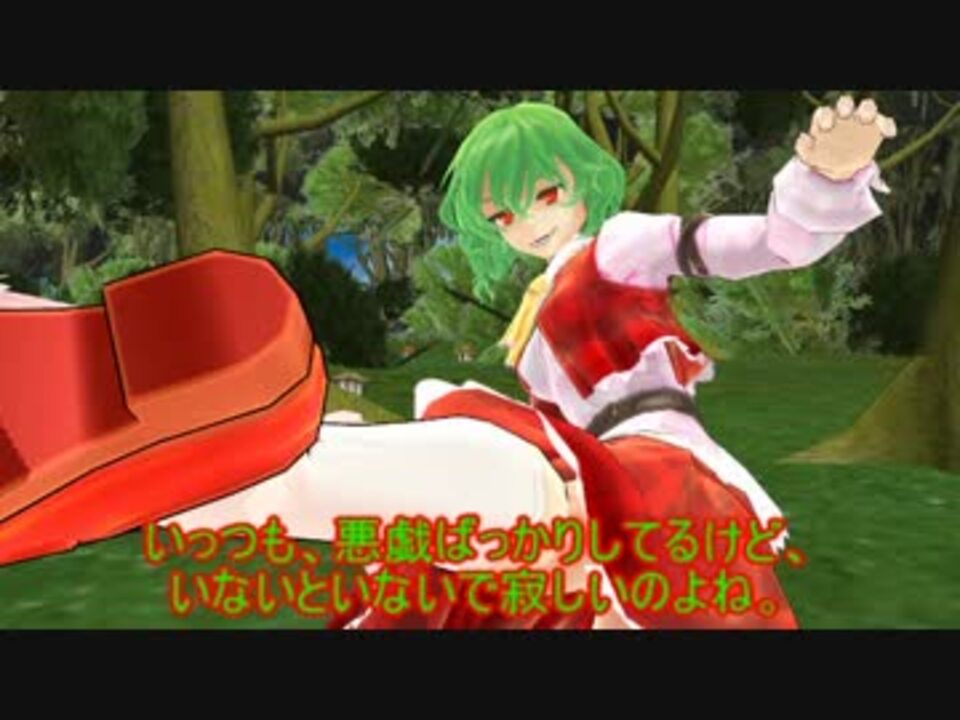 初ボス戦です。 そして、魔理沙の運命は・・・。<br><br>投票結果<br>チルノ:42<br>神子:41<br>フラン:31<br>華仙:25<br><br>霊夢:22<br>妹紅:19<br>【お借りしたモデル等】<br>チルノ:ゆきはね様 <br>フラン:すけ様 <br>霊夢・魔理沙:にがもん様 <br>華仙:モンテコア様/ ぷれでたぁ様/ min.様 <br><font color="#3e3e3e">神子・正邪</font><font color="#3e3e3e">:きのこる様</font> <br>セラフィー:オイシ様 <br> Tda式改変深雨:Tda様/闇雨。様 <br><br>その他はコンテンツツリーにて。<br> 前<a href="https://www.nicovideo.jp/watch/sm34045122" class="watch">sm34045122</a> 次<a href="https://www.nicovideo.jp/watch/sm34284004" class="watch">sm34284004</a><br>探し物の日 <a href="https://www.nicovideo.jp/watch/sm33944766" class="watch">sm33944766</a><br>その1 <a href="https://www.nicovideo.jp/watch/sm32895274" class="watch">sm32895274</a><br>マイリス <a href="https://www.nicovideo.jp/mylist/57615793" target="_blank" rel="noopener">mylist/57615793</a><br>ちなみにコミュニティも作ってたり・・・。<a href="https://com.nicovideo.jp/community/co3813842?com_header=1" target="_blank" rel="noopener nofollow">https://com.nicovideo.jp/community/co3813842?com_header=1</a><br><br>endou様、片腹痛覚の変人様、モブ様、sino±様、puni0様、nekozuki様、endou様、TSM様、<br>DAYTONA様、ウラヌス様、K.様、Muyone様、かめ様、hatimitu様、pulsar様、しまひろたか様、<br>かず様、小松士郎様、かおす様、ウル様、蒼夜の狙撃手様、kou@紅人様、かず様、藤舞様、<br>初城通商新聞社様、かくかくしかじか様、endou様、阪神ジェットカー様、とぼそ様、あいす様、せいろ丸様、<br>nick様、brainbomber様、ねずみん様、雪おにぎりころころりん様、時森提督様、広告ありがとうございました! <br>