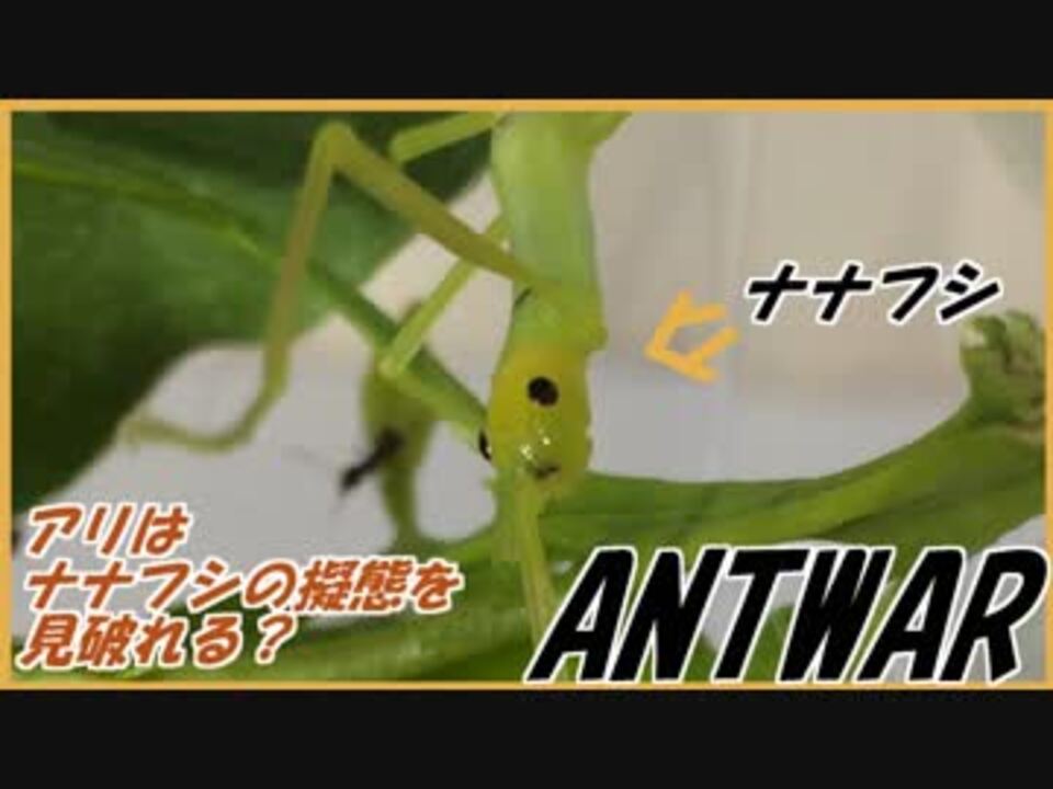 <a href="https://www.nicovideo.jp/watch/sm34084035" class="watch">sm34084035</a>←もどる 次へ→<a href="https://www.nicovideo.jp/watch/sm34134265" class="watch">sm34134265</a><br><br>火曜・土曜の週2回更新。 <br><br> 蟻戦争マイリスト→<u><a href="https://www.nicovideo.jp/mylist/56298874" target="_blank" rel="noopener">mylist/56298874</a></u><br><br> ∧__∧<br> (・ω・)<ナナフシの七不思議!ただ言いたかっただけです・・・。ごめんなさい(´・ω・`)<br><br><br> 蟻は高度な社会性を持つ昆虫である。<br> ~The ANT is advanced social insect.~<br><br> 卵を産む役、飼育する役、兵隊役などに分かれ、1つのコミュニティを形成する。<br> ~ANTs constitute one comunity.ANTs have the part(childbirth,bring