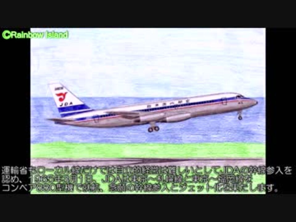 <font size="4">迷列車シリーズ九周年おめでとうございます。</font><br><br>今回は記念動画として、日本最大の大手私鉄グループ、東急電鉄から見た<br>東亜国内航空→日本エアシステムの歴史をご紹介します。<br>第1回は東亜国内航空の前身である富士航空→日本国内航空について。<br>なお、前回の動画で「全6回」と言っていましたが、絶対6回で終わりそうにありません。<br>あと原稿もまだ4話目書いてる最中なので九周年祭期間内の完結はまず不可能です。<br>完結までしばらくかかりますのでどうぞ長い目でお付き合い下さい。 <br>第2話→<a href="https://www.nicovideo.jp/watch/sm34194251" class="watch">sm34194251</a><br><br><br>なんかエライもんに手を出してしまったなこれ・・・<br><br>なお、今回は東亜国内航空以前の画像がほとんどなかったので、当時の航空機のイラストを<br>「Rainbow Island」様よりお借りしております。<br>使用を快諾して頂きましたレインボードルフィン様、本当にありがとうございました。<br>素晴らしいイラストが多いので、是非一度サイトを訪れて見て下さい。<br>レインボードルフィン様HP→<a href="http://www.rainbow-island.jp/" target="_blank" rel="noopener nofollow">http://www.rainbow-island.jp/</a><br><br>あと今回からオープニング曲もYouTube版と揃えました。やっぱりあのテーマ曲を使い続けるのは色々と・・・ね。事情ご賢察頂けると幸いです。<br><br>迷飛行機・迷航空会社列伝マイリス→<a href="https://www.nicovideo.jp/mylist/24098760" target="_blank" rel="noopener">mylist/24098760</a> 迷列車北陸編マイリス→<a href="https://www.nicovideo.jp/mylist/19084652" target="_blank" rel="noopener">mylist/19084652</a> 迷列車経済マイリス→<a href="https://www.nicovideo.jp/mylist/45040373" target="_blank" rel="noopener">mylist/45040373</a> 東海道交通戦争マイリス→<a href="https://www.nicovideo.jp/mylist/57958388" target="_blank" rel="noopener">mylist/57958388</a> 補足情報はブログへ→<a href="http://www.meihokuriku-alps.com" target="_blank" rel="noopener nofollow">http://www.meihokuriku-alps.com</a><br><br>使用BGMは主にこちらから。素晴らしい曲が多いのでおすすめ。<br>甘茶の音楽工房様 <a href="http://amachamusic.chagasi.com/index.html" target="_blank" rel="noopener nofollow">http://amachamusic.chagasi.com/index.html</a><br>魔王魂様 <a href="https://maoudamashii.jokersounds.com/list/bgm5.html" target="_blank" rel="noopener nofollow">https://maoudamashii.jokersounds.com/list/bgm5.html</a>