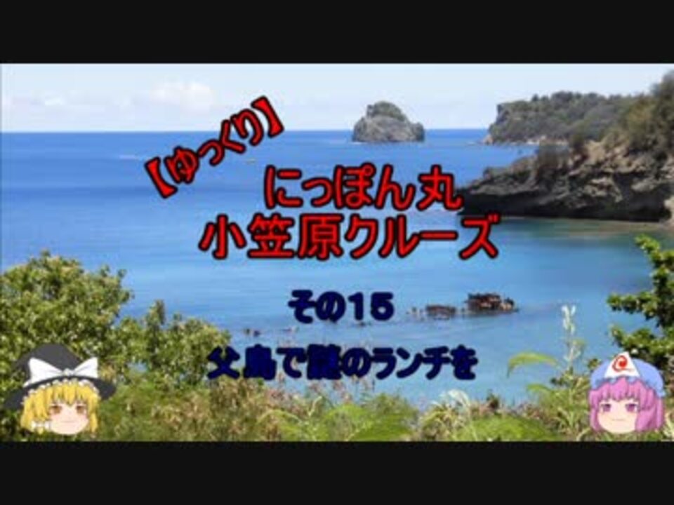 2018年7月中旬に行った小笠原クルーズの旅動画です!<br><br>来年の皇太子様即位で行う大嘗祭で亀トという占い <br>をやる予定というニュースが流れましたね。占いに使う<br>海亀の甲羅を小笠原で手に入れるようです。<br><br>なるほどな・・と思いました。<br> <br>*今回の動画内でのランチ紹介の食材でショックを受ける <br>方 がいるかもしれません。ご注意お願いします。 <br><br>その14 <a href="https://www.nicovideo.jp/watch/sm34134291" class="watch">sm34134291</a> ← その15 → その16 <a href="https://www.nicovideo.jp/watch/sm34209655" class="watch">sm34209655</a><br> <br><br>今回の旅動画<br>【ゆっくり】にっぽん丸 小笠原クルーズ <a href="https://www.nicovideo.jp/mylist/64524381" target="_blank" rel="noopener">mylist/64524381</a><br><br>過去の旅動画<br>2017年 【ゆっくり】フランス パリ ショコラとスイーツの旅 <a href="https://www.nicovideo.jp/mylist/60413811" target="_blank" rel="noopener">mylist/60413811</a><br><br><br><br><br>