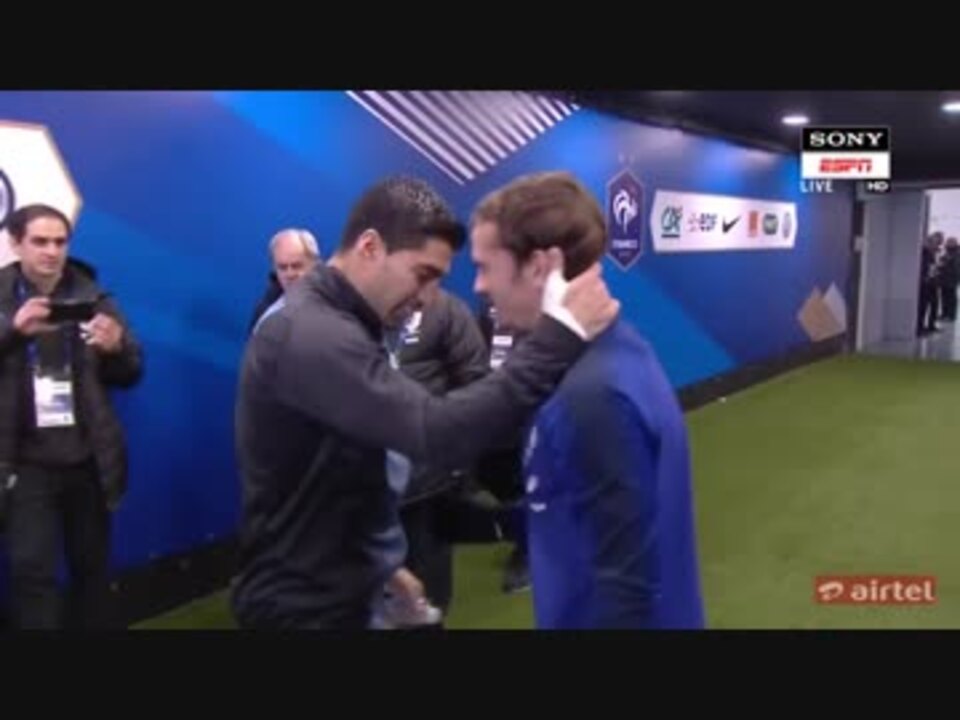 スタッド・ド・フランス。<br>(0~)バックステージ・入場・国歌斉唱・スタメン紹介<br>(6分5秒~)キックオフ。<br><br>●親善試合 <br>ドイツ vs ロシア (2018年11月15日) → <a href="https://www.nicovideo.jp/watch/sm34181637" class="watch">sm34181637</a><br>イングランド vs アメリカ (2018年11月15日) → <a href="https://www.nicovideo.jp/watch/sm34180812" class="watch">sm34180812</a> 《ルーニー代表引退試合》<br>ブラジル vs ウルグアイ (2018年11月16日) → <a href="https://www.nicovideo.jp/watch/sm34185264" class="watch">sm34185264</a><br>ブラジル vs カメルーン (2018年11月20日) → <a href="https://www.nicovideo.jp/watch/sm34205131" class="watch">sm34205131</a><br>アルゼンチン vs メキシコ (2018年11月16日)→ <a href="https://www.nicovideo.jp/watch/sm34187957" class="watch">sm34187957</a> 《2連戦 ①》<br>アルゼンチン vs メキシコ (2018年11月20日)→ <a href="https://www.nicovideo.jp/watch/sm34206800" class="watch">sm34206800</a> 《2連戦 ②》<br>スペイン vs ボスニアヘルツェゴビナ(2018年11月18日)→ <a href="https://www.nicovideo.jp/watch/sm34195931" class="watch">sm34195931</a><br>イタリア vs アメリカ(2018年11月20日)→ <a href="https://www.nicovideo.jp/watch/sm34205456" class="watch">sm34205456</a><br><br>●【リーグA】第6節<br>[グループ1] ドイツ vs オランダ (2018年11月19日)→ <a href="https://www.nicovideo.jp/watch/sm34201067" class="watch">sm34201067</a><br>[グループ2] スイス vs ベルギー(2018年11月18日)→ <a href="https://www.nicovideo.jp/watch/sm34196328" class="watch">sm34196328</a><br>[グループ3] ポルトガル vs ポーランド(2018年11月20日)→ <a href="https://www.nicovideo.jp/watch/sm34204768" class="watch">sm34204768</a><br>[グループ4] イングランド vs クロアチア(2018年11月18日)→ <a href="https://www.nicovideo.jp/watch/sm34194821" class="watch">sm34194821</a><br><br>●18-19 UEFAネーションズリーグ【グループA】<br>・[第1節] → <a href="https://www.nicovideo.jp/mylist/63621523" target="_blank" rel="noopener">mylist/63621523</a><br>・[第2節] → <a href="https://www.nicovideo.jp/mylist/63621654" target="_blank" rel="noopener">mylist/63621654</a><br>・[第3節] → <a href="https://www.nicovideo.jp/mylist/63621661" target="_blank" rel="noopener">mylist/63621661</a><br>・[第4節] → <a href="https://www.nicovideo.jp/mylist/63621663" target="_blank" rel="noopener">mylist/63621663</a><br>・[第5節] → <a href="https://www.nicovideo.jp/mylist/63621669" target="_blank" rel="noopener">mylist/63621669</a><br><br>【グループB】・ウェールズ戦のみ → <a href="https://www.nicovideo.jp/mylist/63621685" target="_blank" rel="noopener">mylist/63621685</a><br>